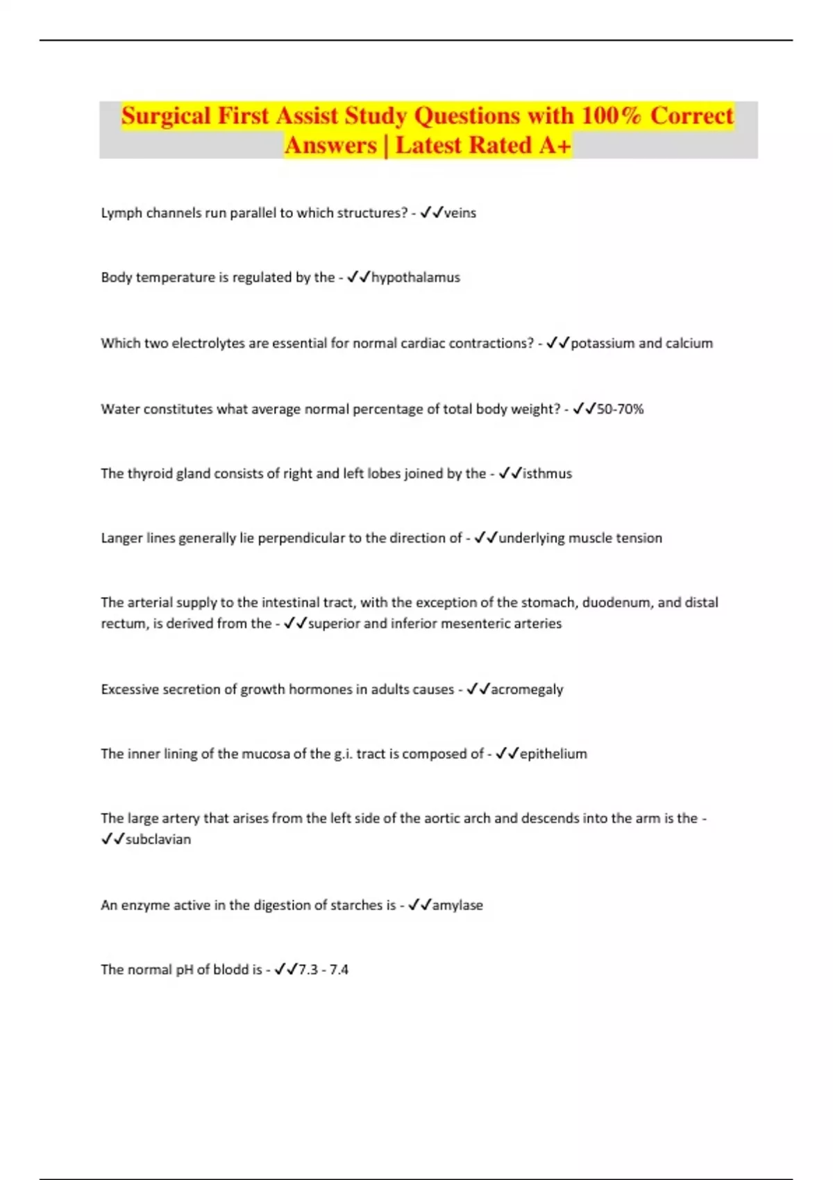 Surgical First Assist Study Questions with 100% Correct Answers | Latest Rated A+