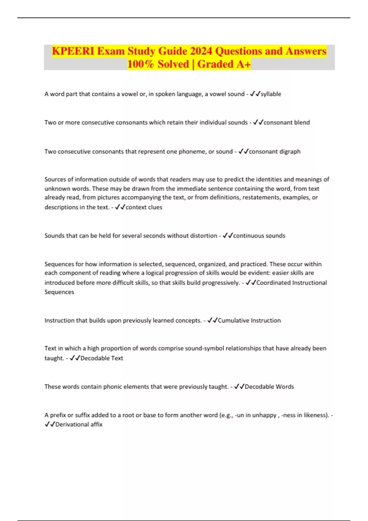 KPEERI Exam Study Guide 2024 Questions and Answers 100% Solved | Graded A+