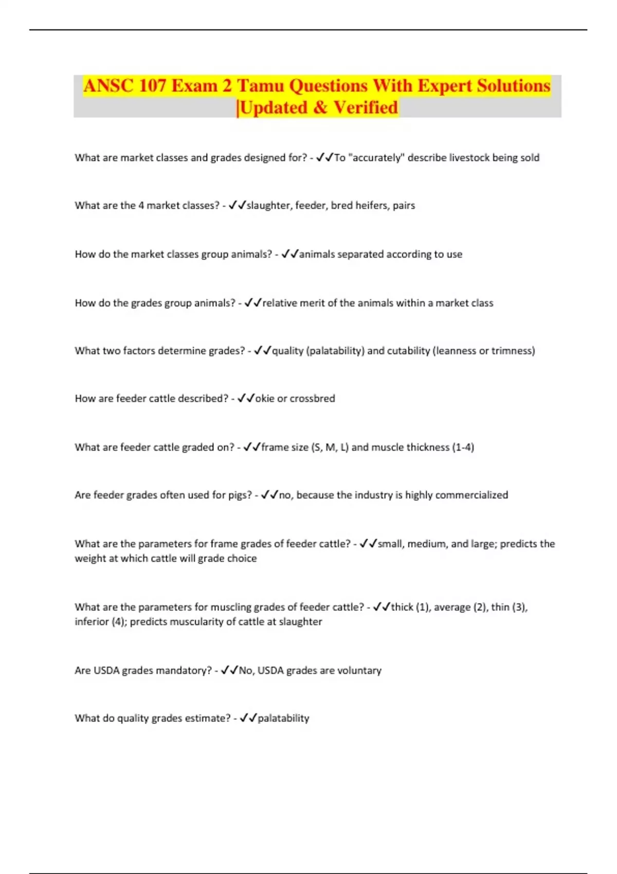 ANSC 107 Exam 2 Tamu Questions With Expert Solutions |Updated & Verified