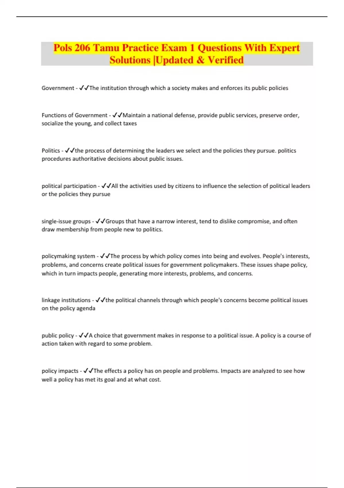 Pols 206 Tamu Practice Exam 1 Questions With Expert Solutions |Updated & Verified