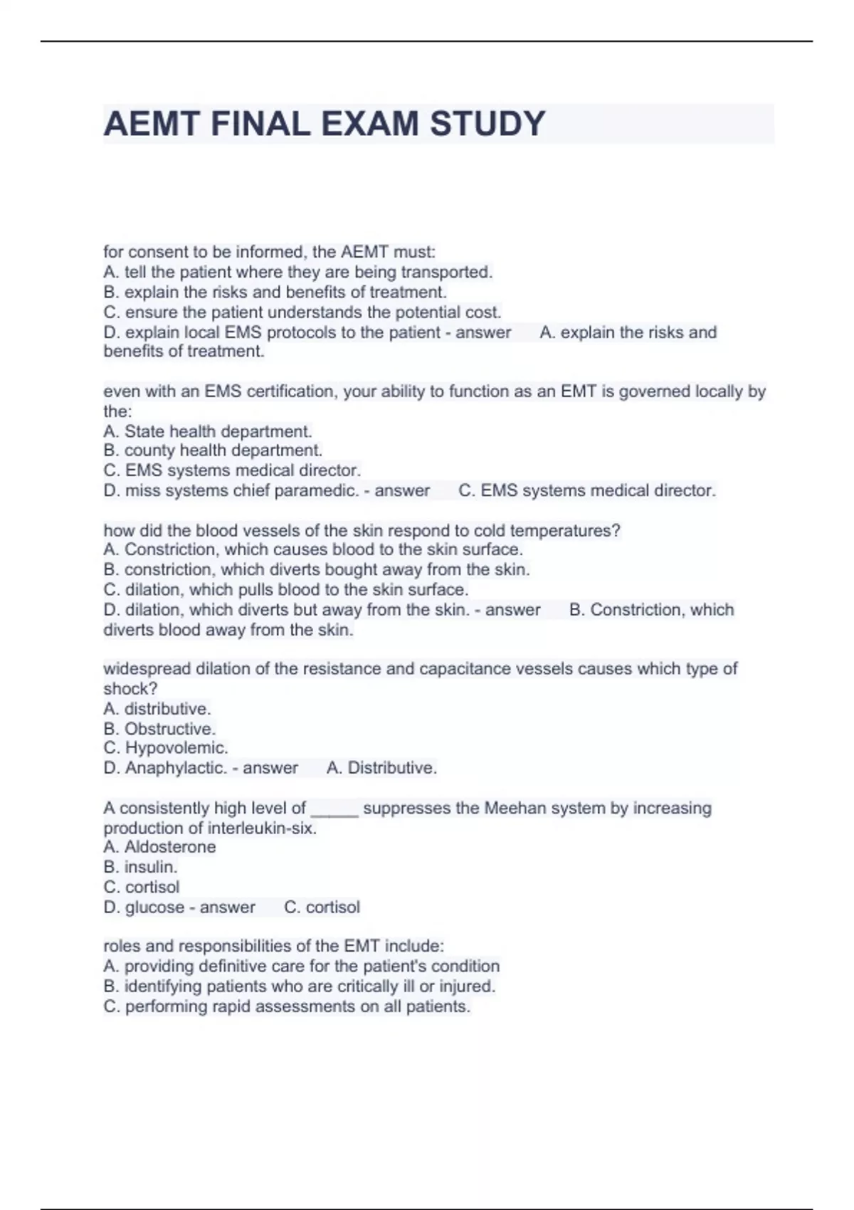 AEMT FINAL EXAM STUDY QUESTIONS AND ANSWERS GUARANTEED A+