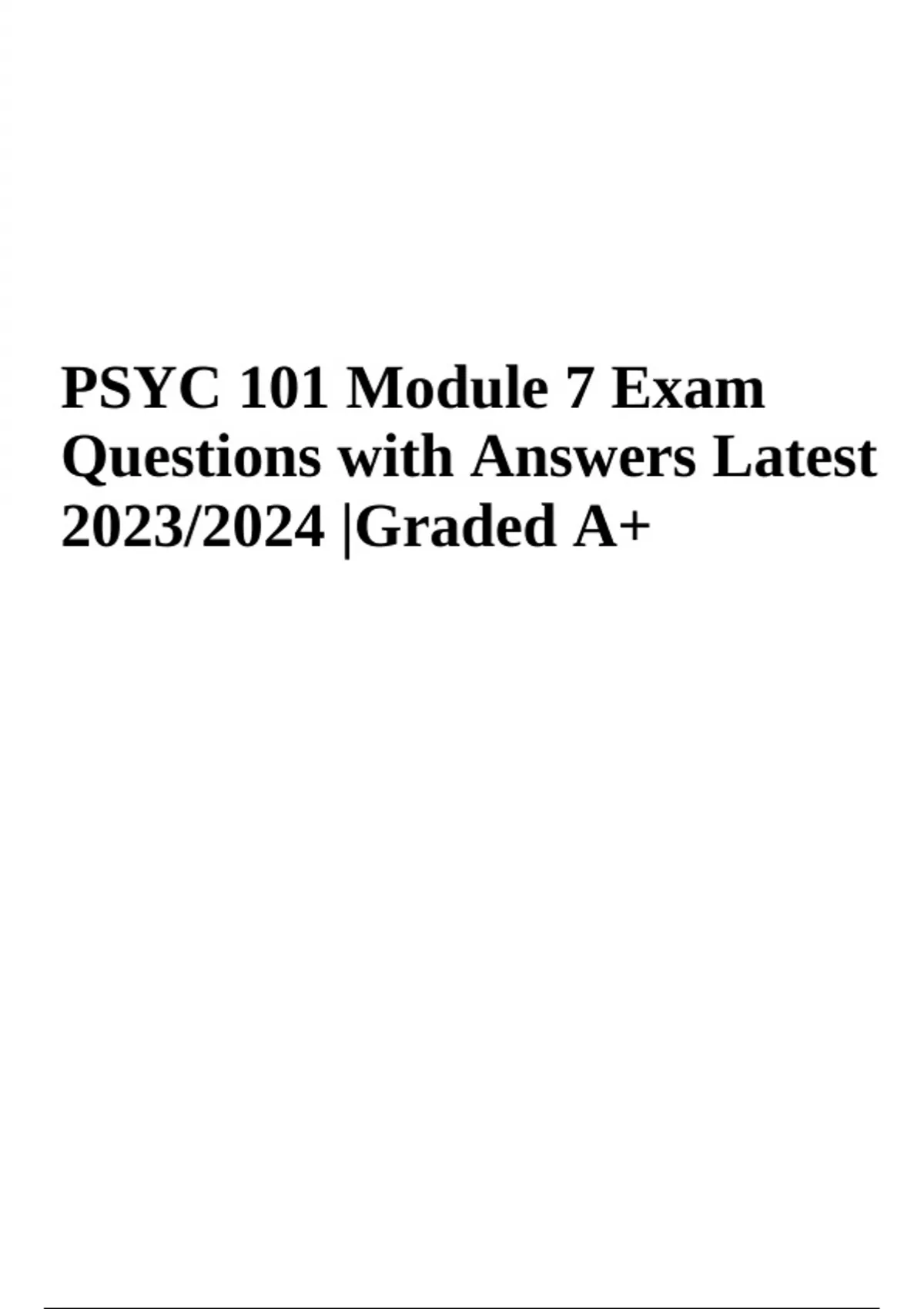 PSYC 101 Module 7 Exam Questions with Answers Latest 2023/2024 |Graded A+