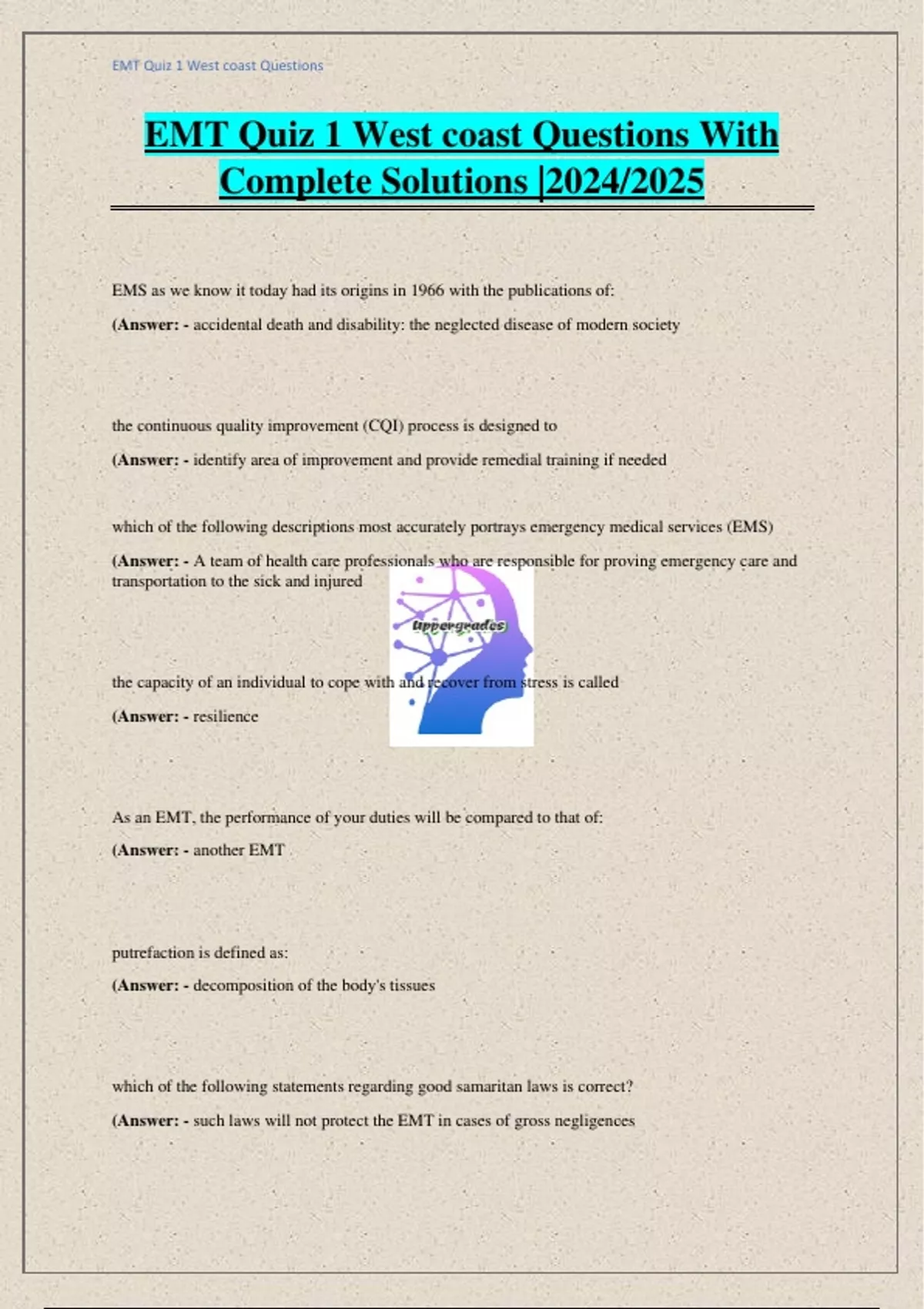 EMT Quiz 1 West coast Questions With Complete Solutions |2024/2025,EMT Quiz 1 West coast Questions With Complete Solutions |2024/2025,EMT Quiz 1 West coast Questions With Complete Solutions |2024/2025