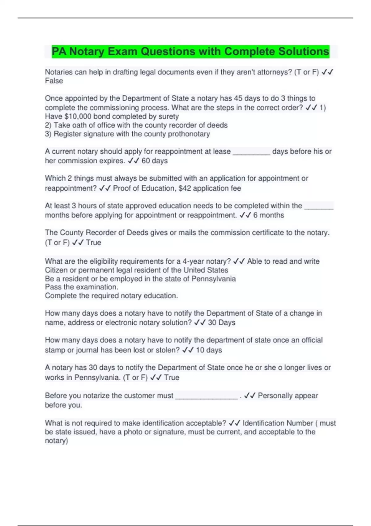 pa notary exam questions with complete solutions