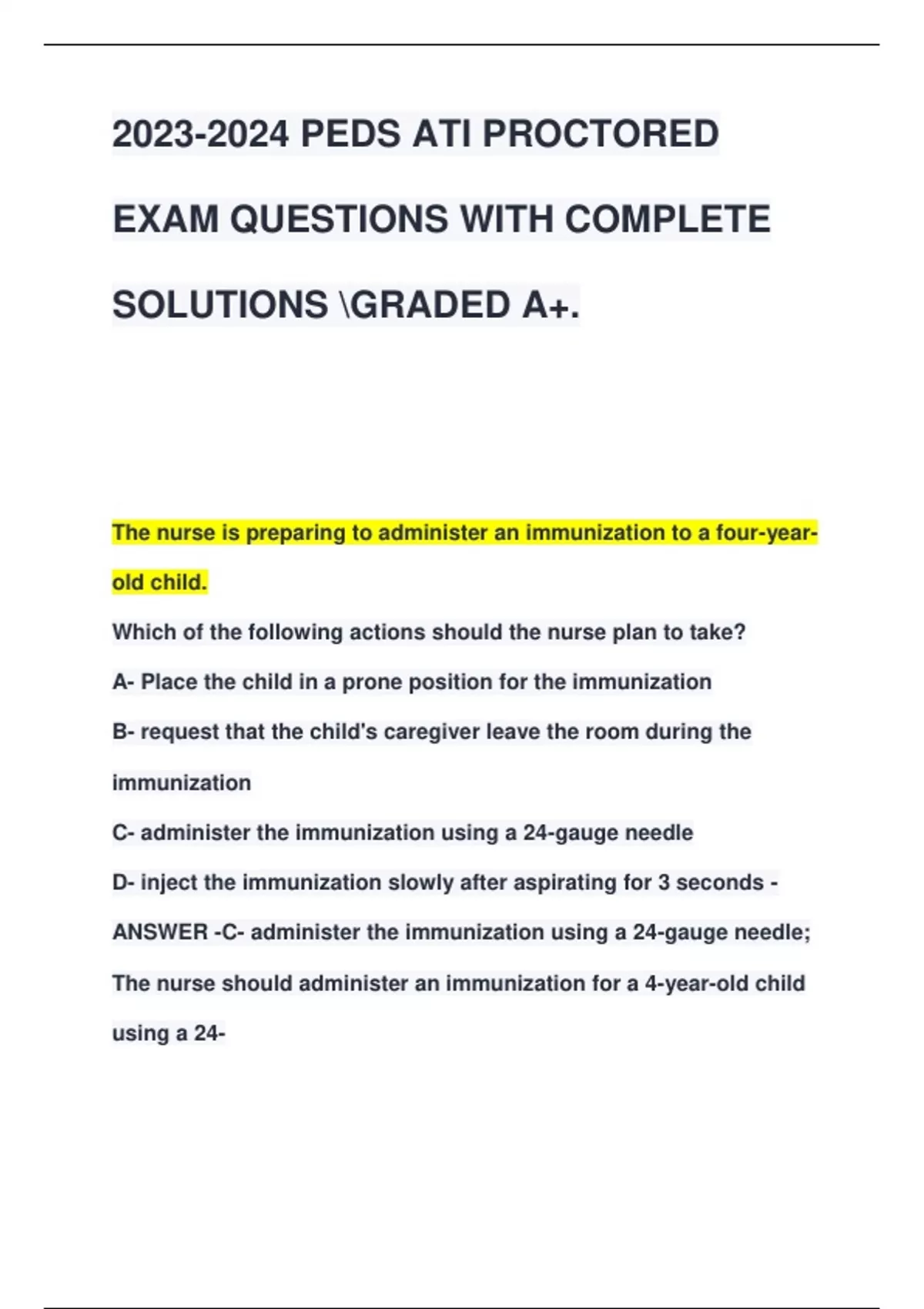 PEDS ATI QUESTIONS WITH COMPLETE SOLUTIONS GRADED A+.