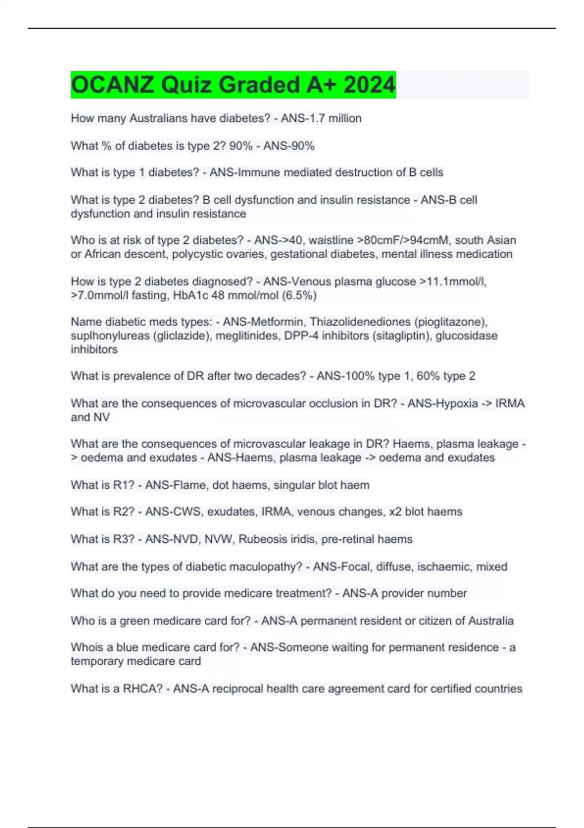 OCANZ Quiz Graded A+ 2024