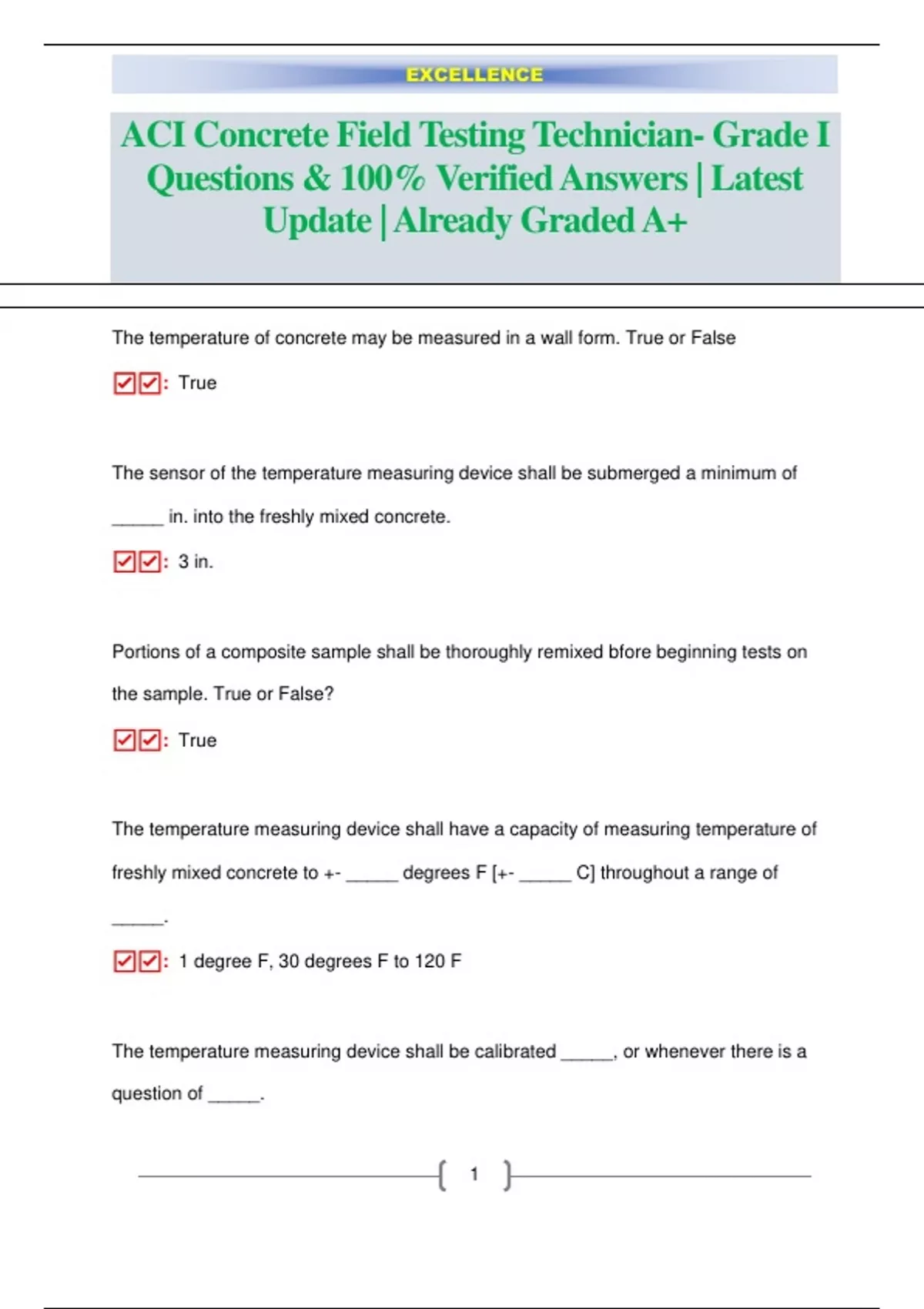 ACI Concrete Field Testing Technician- Grade I Questions & 100% Verified Answers | Latest Update | Already Graded A+