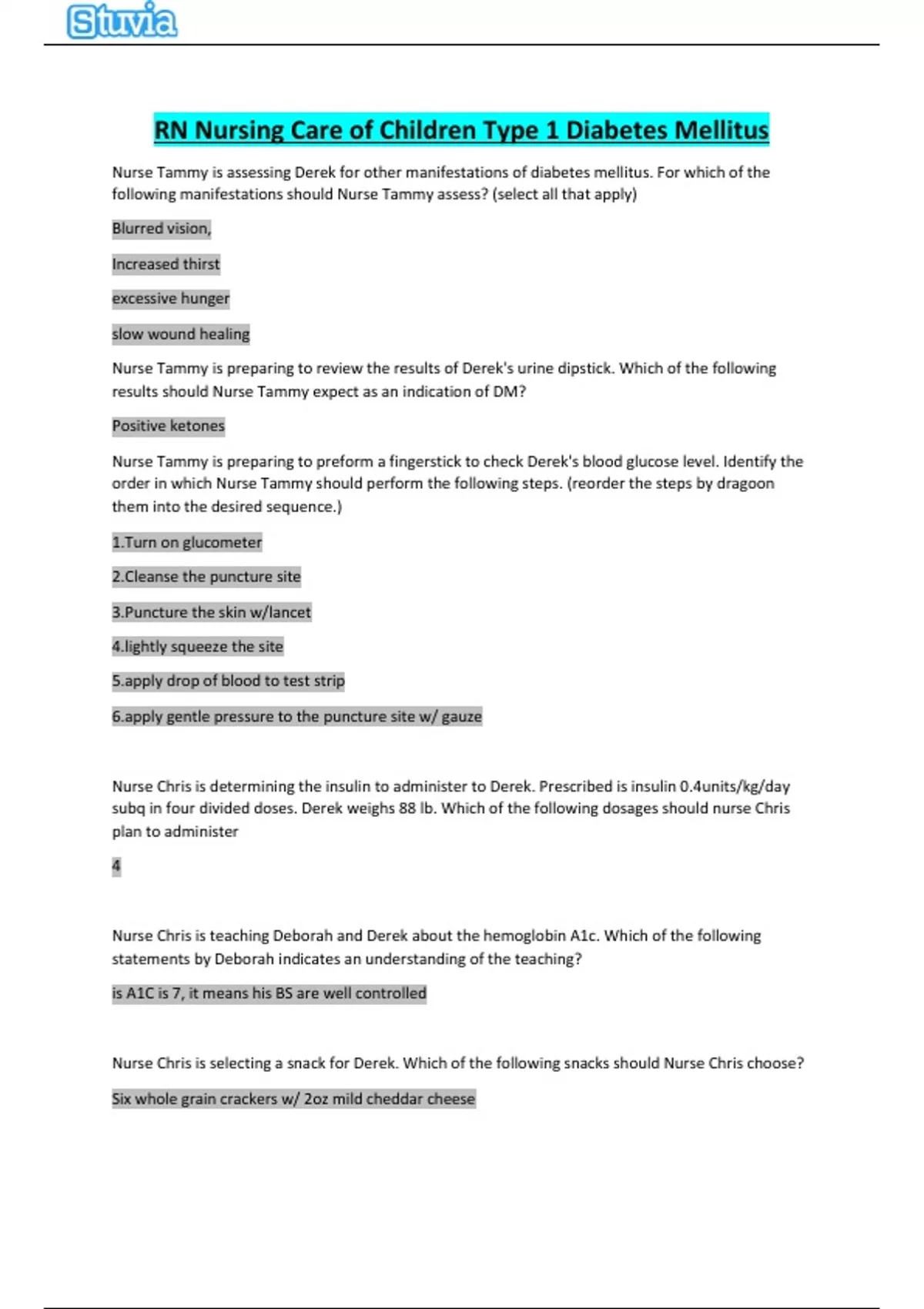 RN Nursing Care of Children Type 1 Diabetes Mellitus Latest 2024.