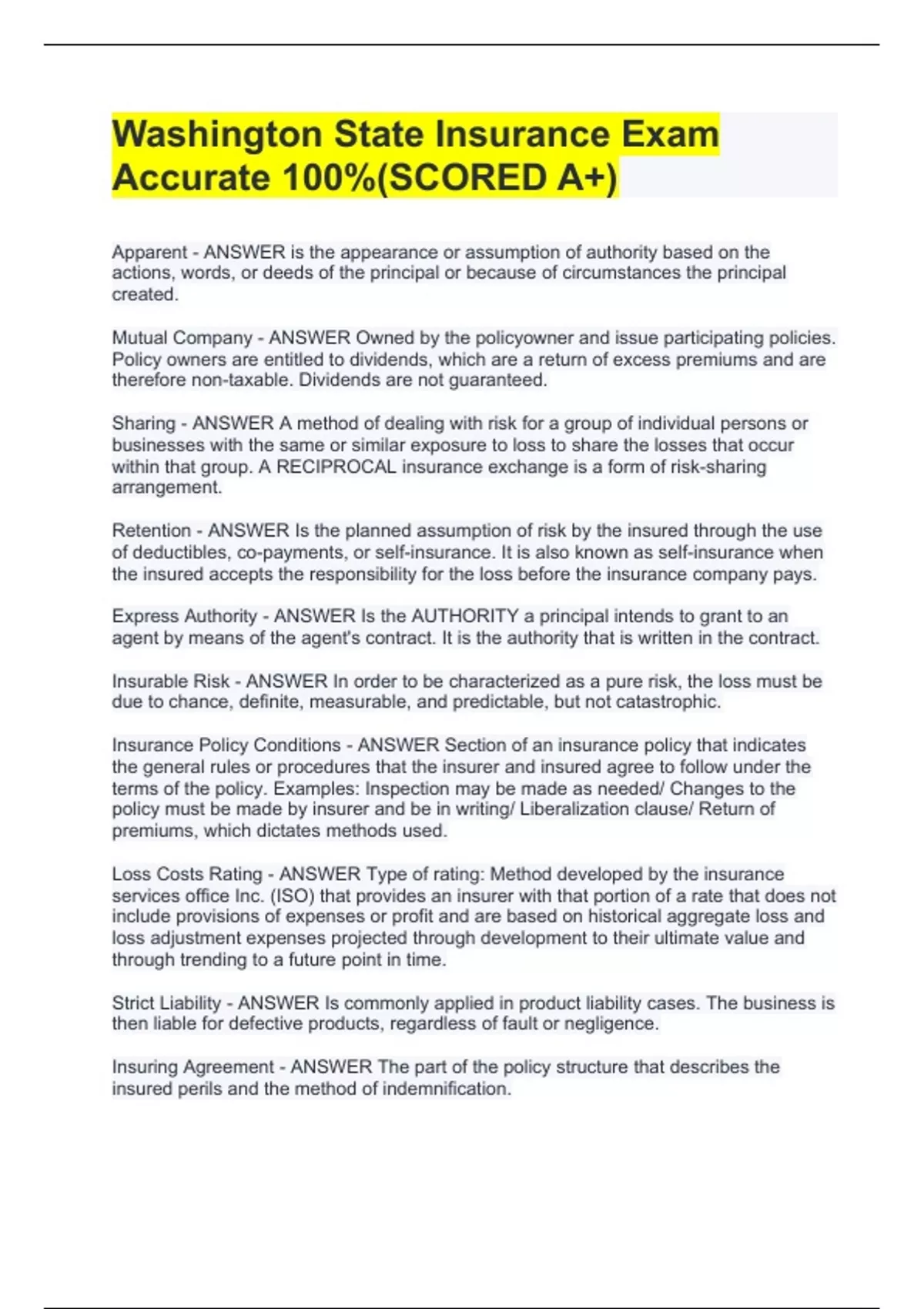 Washington State Insurance Exam Accurate 100%(SCORED A+)