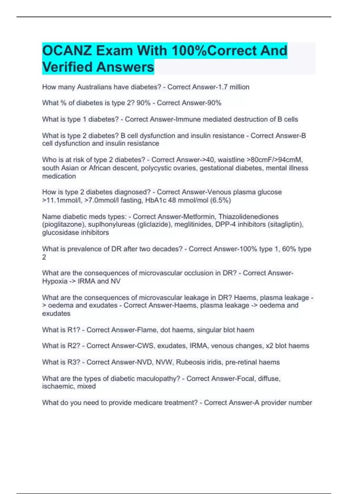 OCANZ Exam With 100%Correct And Verified Answers