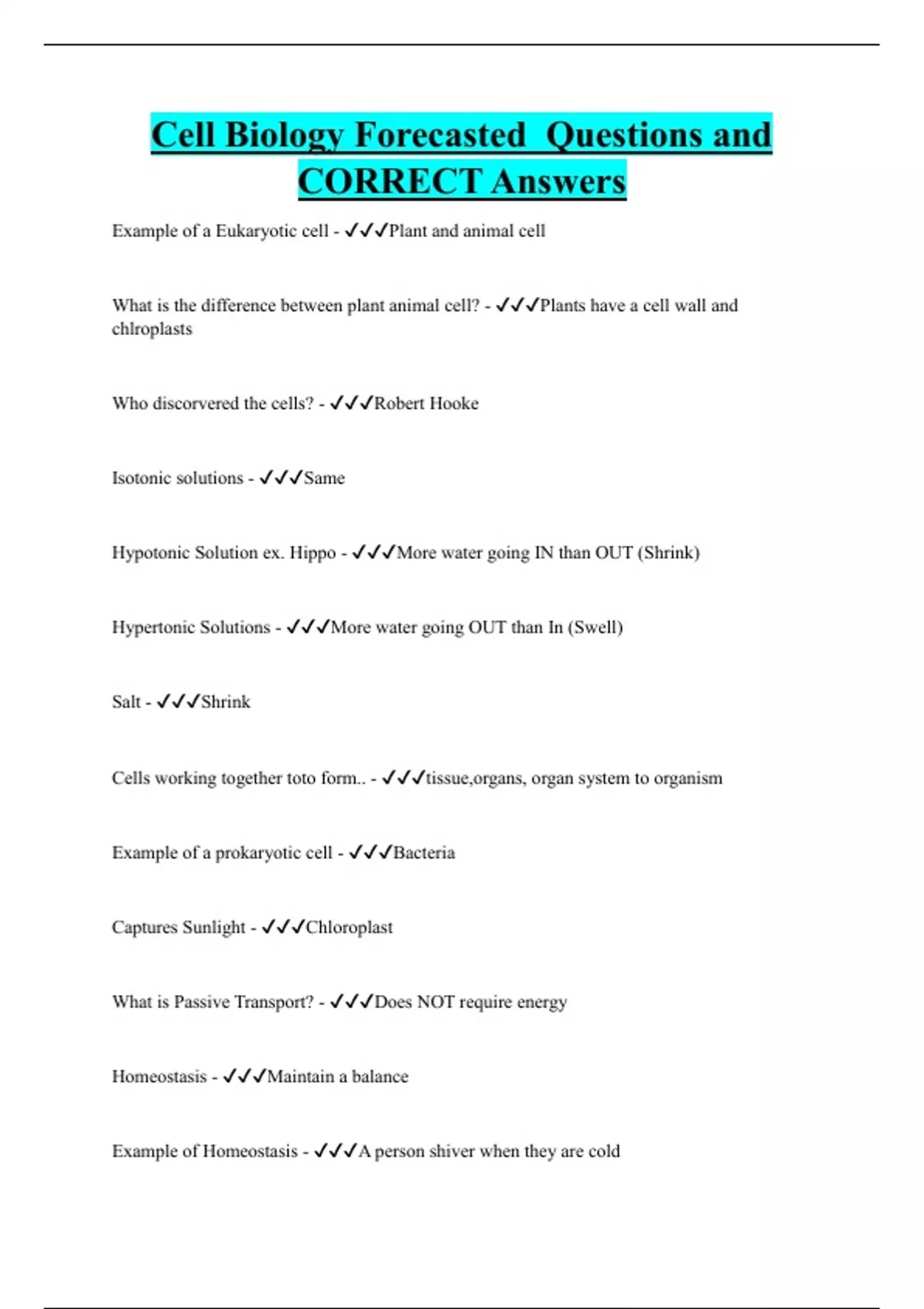 Cell Biology Forecasted Questions and CORRECT Answers