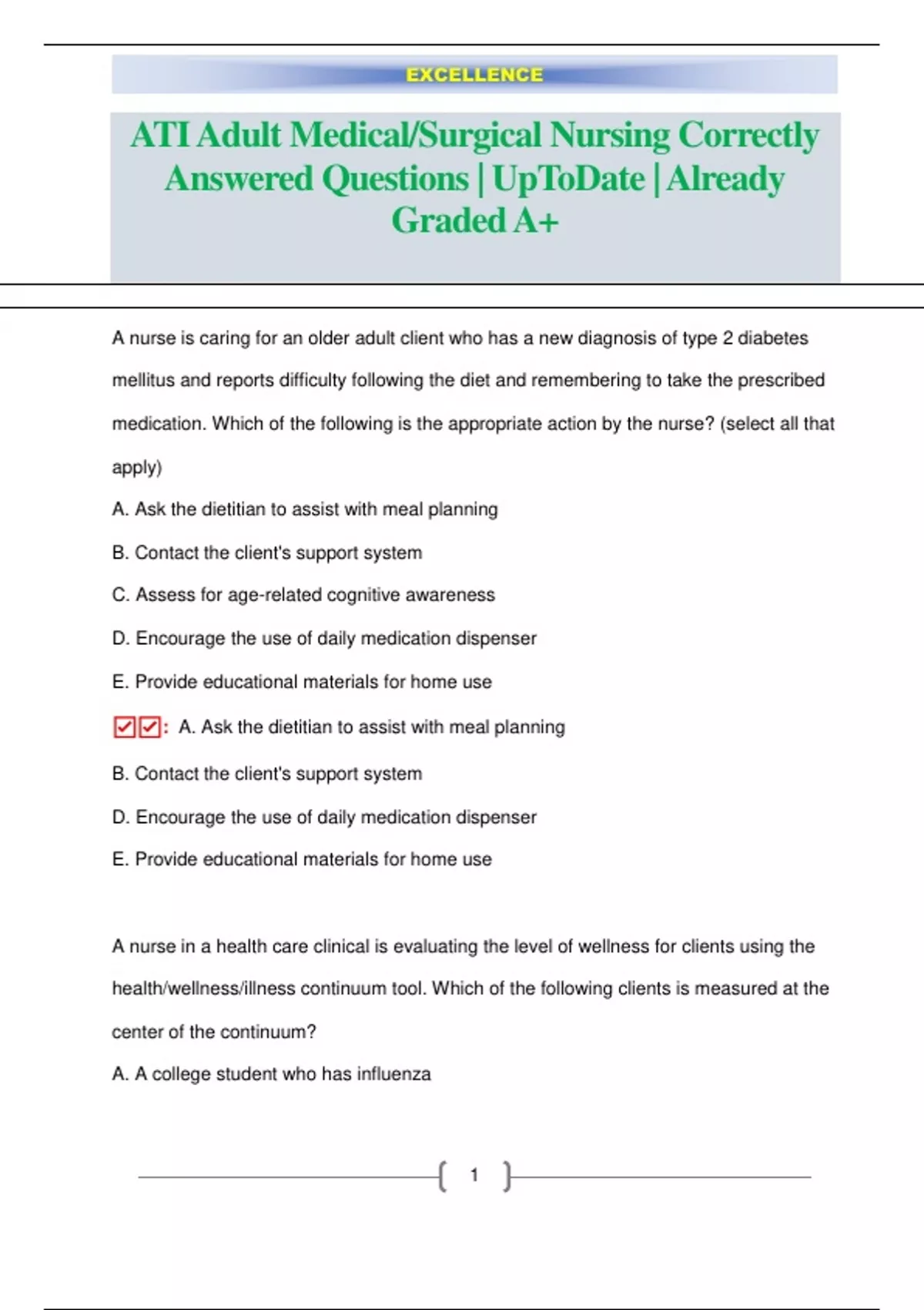 ATI Adult Medical/Surgical Nursing Correctly Answered Questions| UpToDate | Already Graded A+