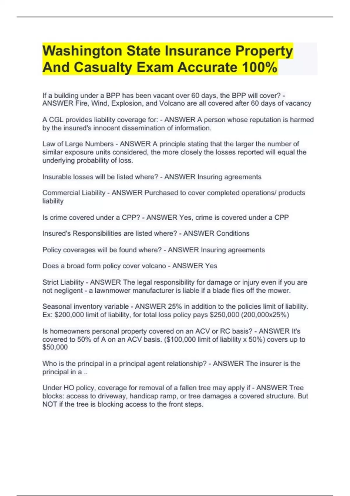 Washington State Insurance Property And Casualty Exam Accurate 100%Washington State Insurance Property And Casualty Exam Accurate 100%