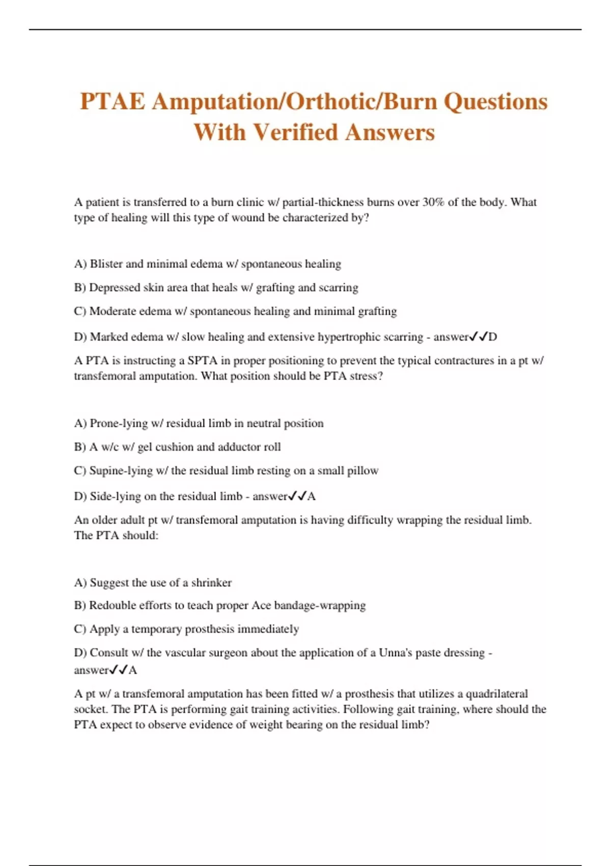 PTAE Amputation/Orthotic/Burn Questions With Verified Answers