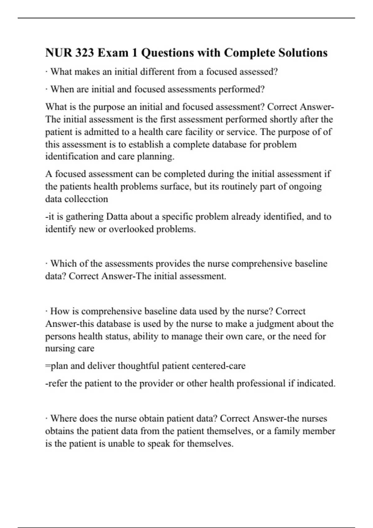 NUR 323 Exam 1 Questions with Complete Solutions