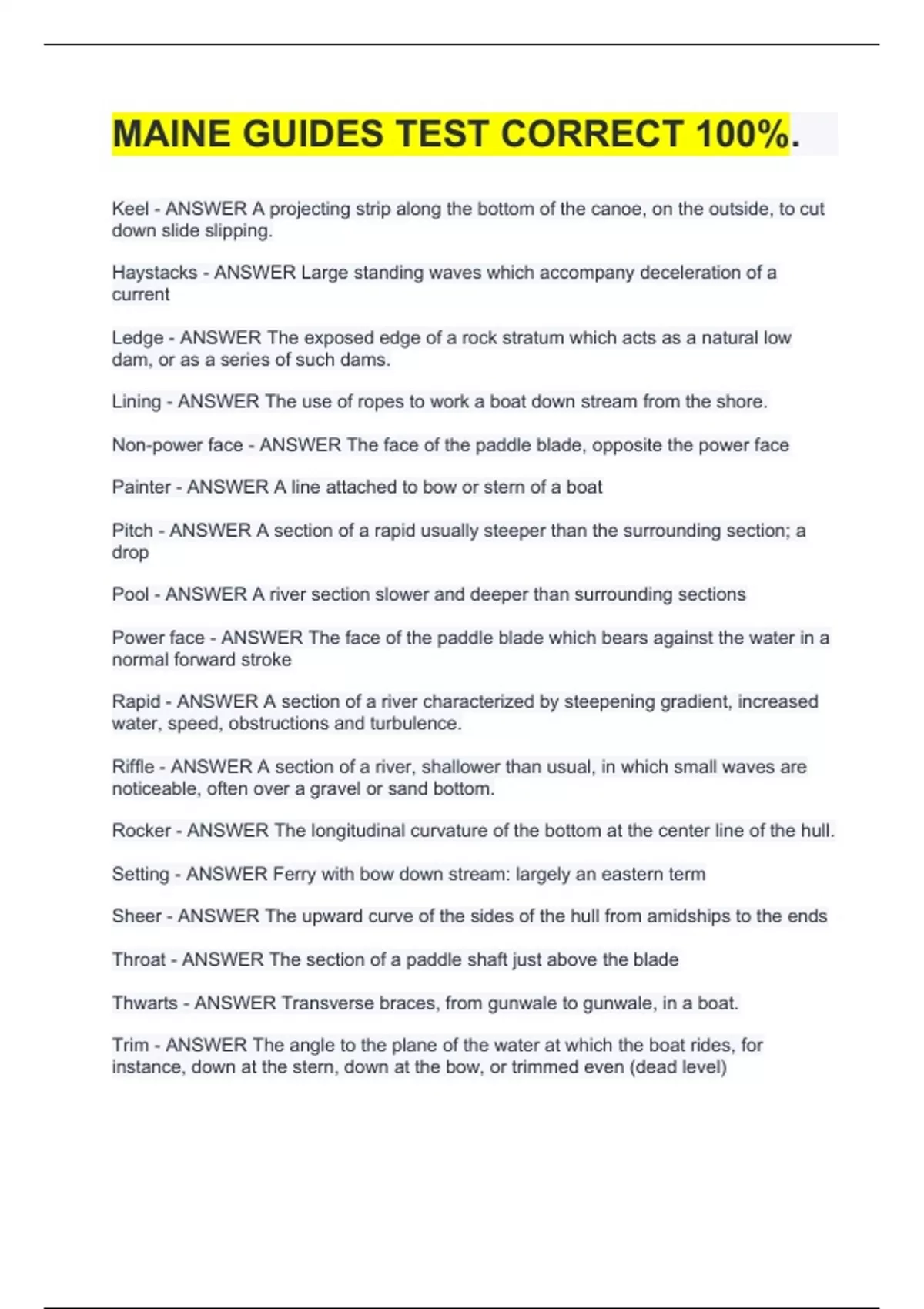 Keel - ANSWER A projecting strip along the bottom of the canoe, on the outside, to cut
