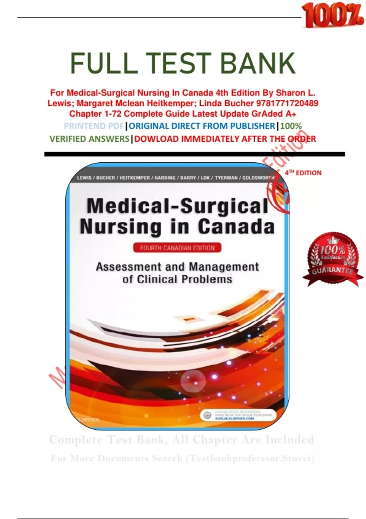 FULL TEST BANK For Medical-Surgical Nursing In Canada 4th Edition By Sharon L. Lewis; Margaret Mclean Heitkemper; Linda Bucher 9781771720489 Chapter 1-72 Complete Guide Latest Update Graded A+