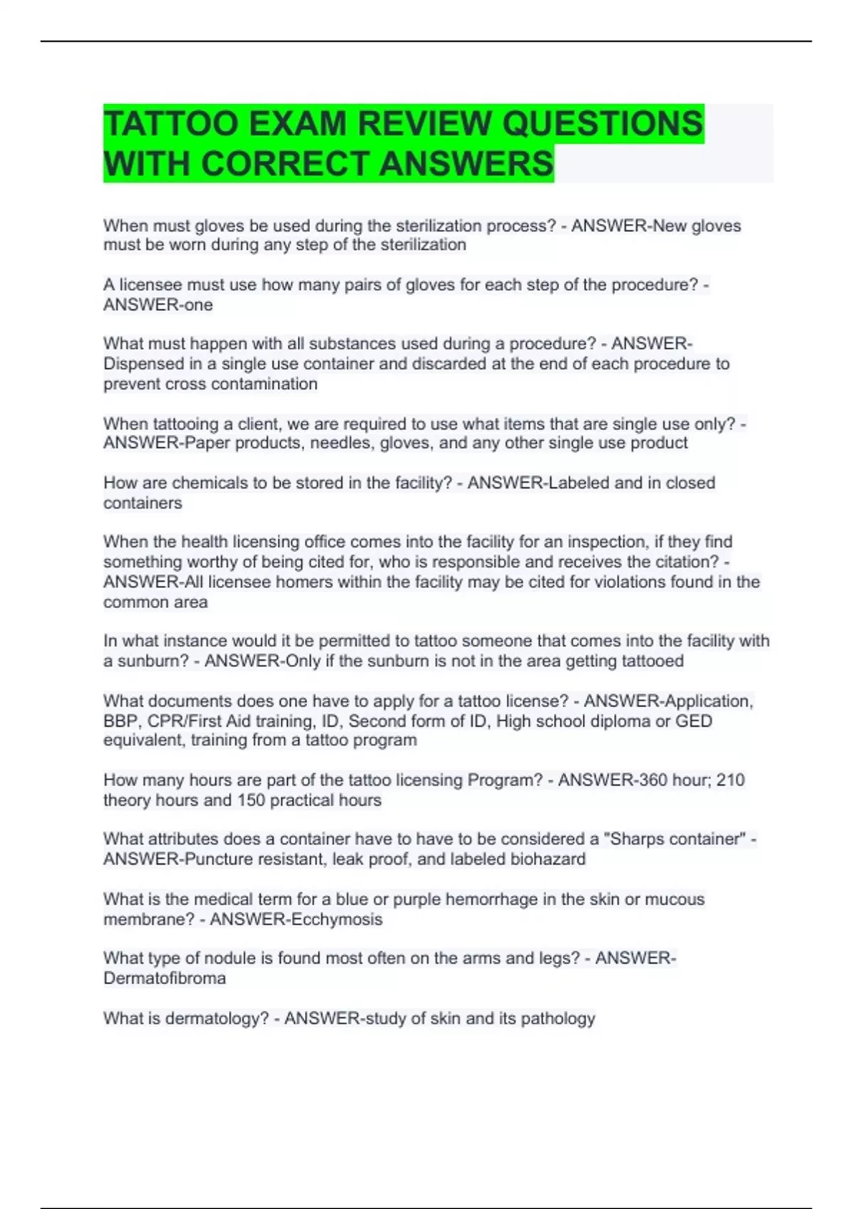 TATTOO EXAM REVIEW QUESTIONS WITH CORRECT ANSWERS