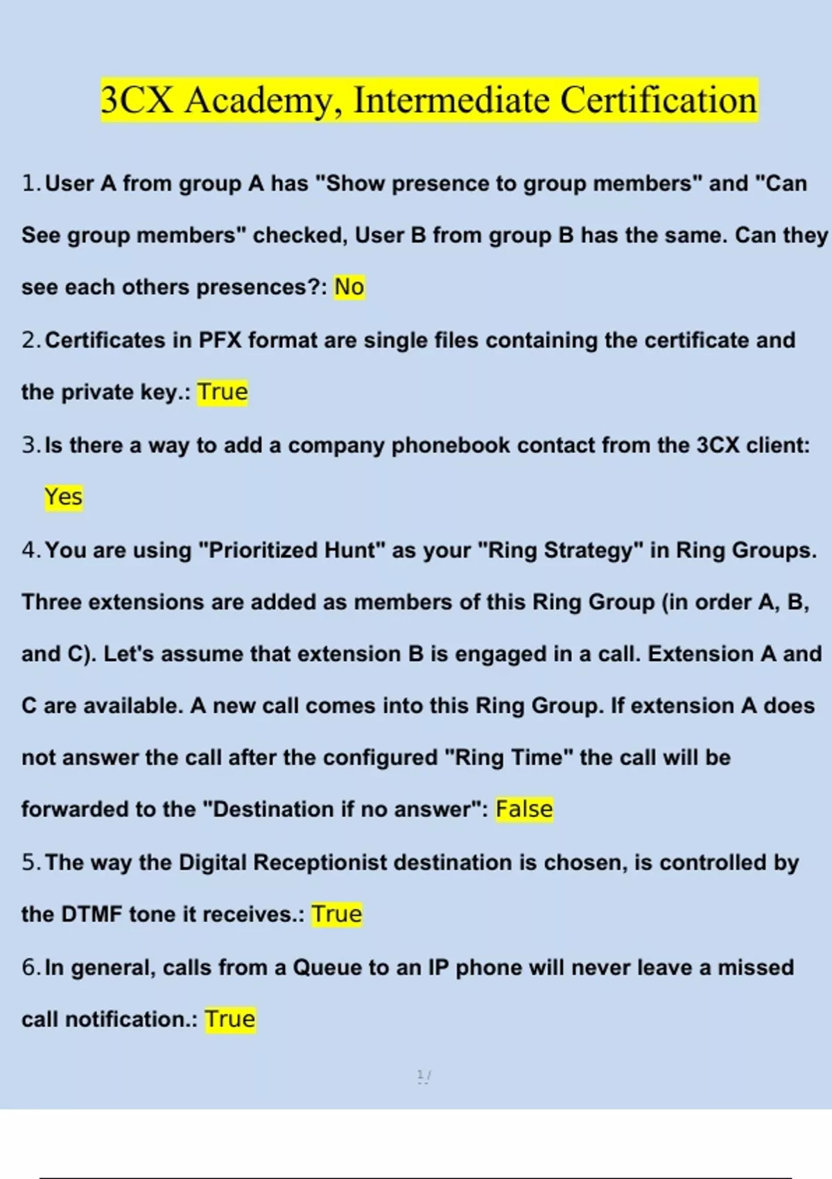 3CX Academy, Intermediate Certification Solved 100% Correct |2024/2025 Correct Questions and Answers