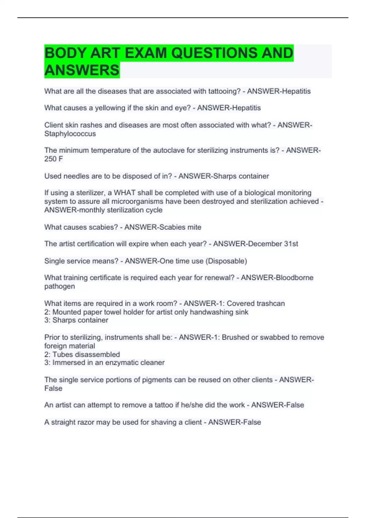 BODY ART EXAM QUESTIONS AND