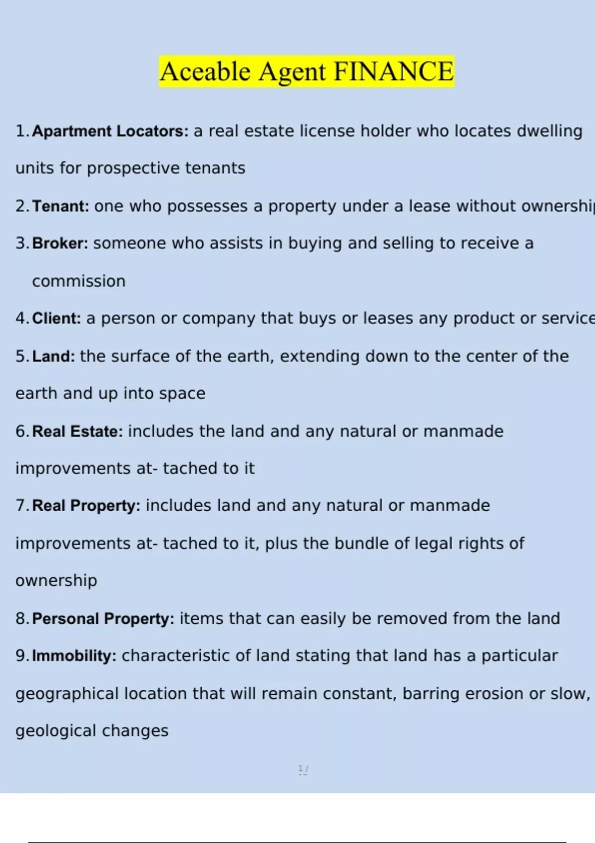 Aceable Agent FINANCE Solved 100% Correct |2024/2025 Correct Questions and Answers