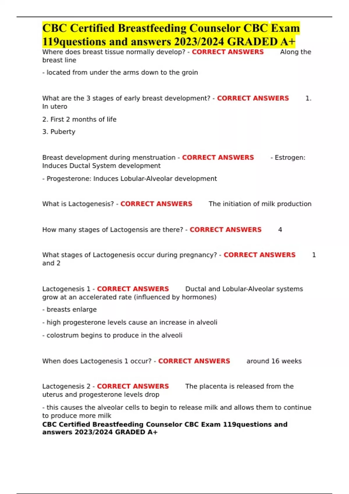 Summary CBC Certified Breastfeeding Counselor CBC Exam 119questions and answers 2023/2024 GRADED A+