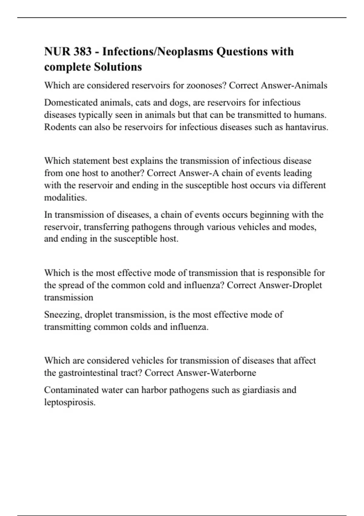NUR 383 - Infections/Neoplasms Questions with complete Solutions
