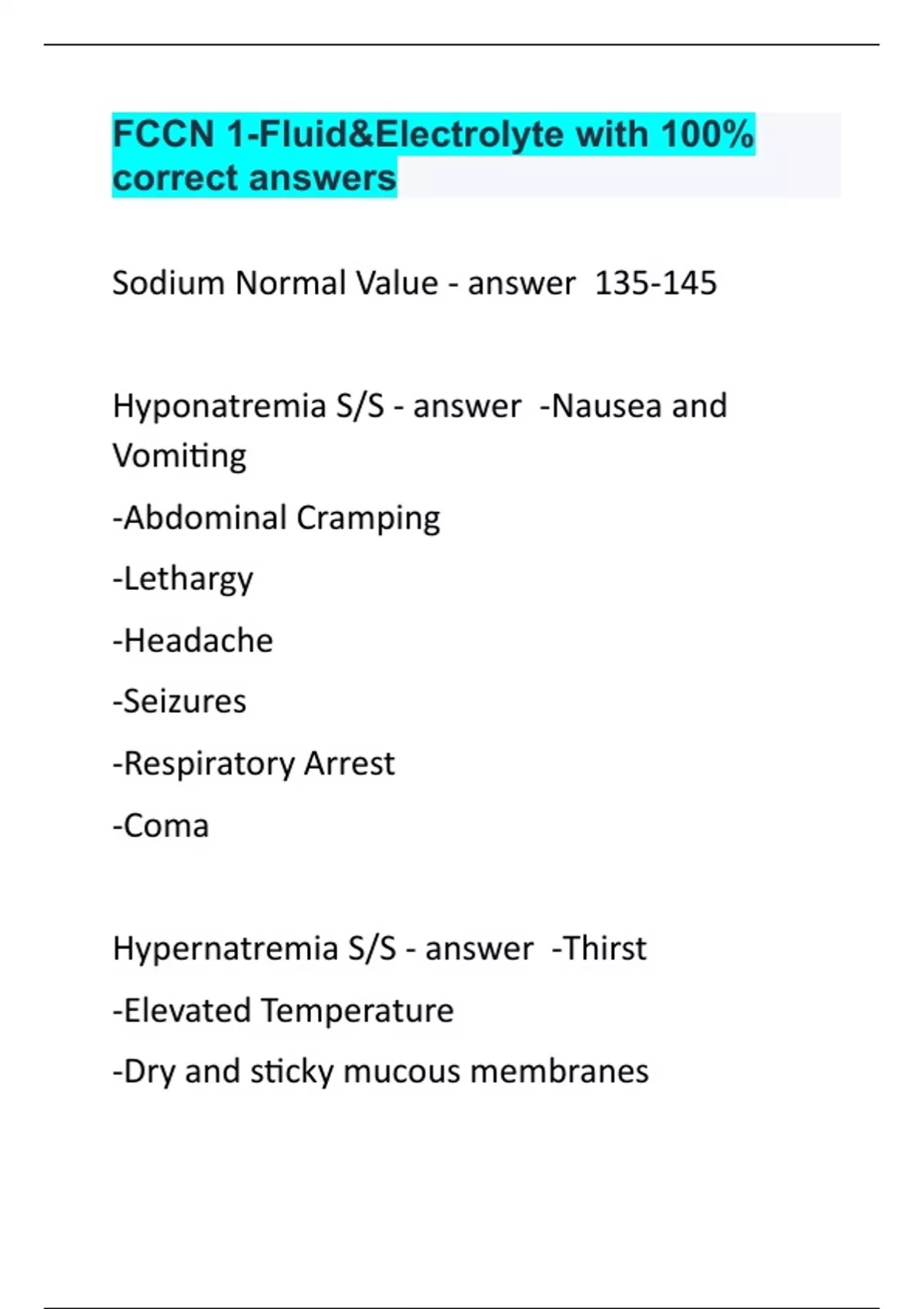 FCCN 1-Fluid&Electrolyte with 100% correct answers