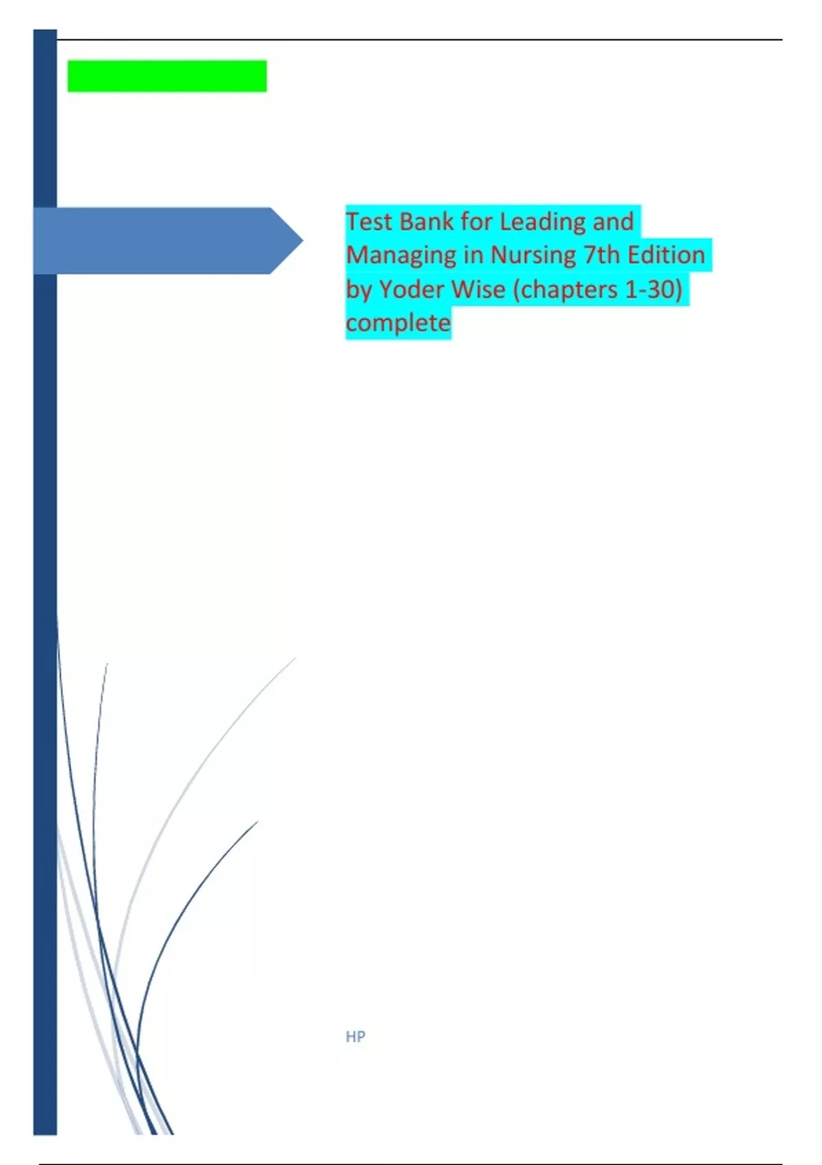 Test Bank for Leading and Managing in Nursing 7th Edition by Yoder Wise (chapters 1-30) complete