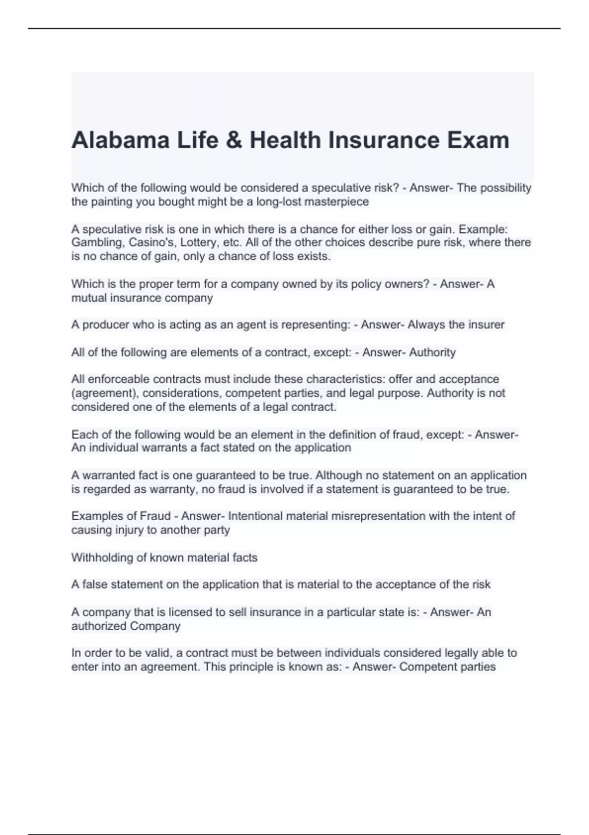Alabama State Insurance Exam Bundle (Full Pack solution) Graded A
