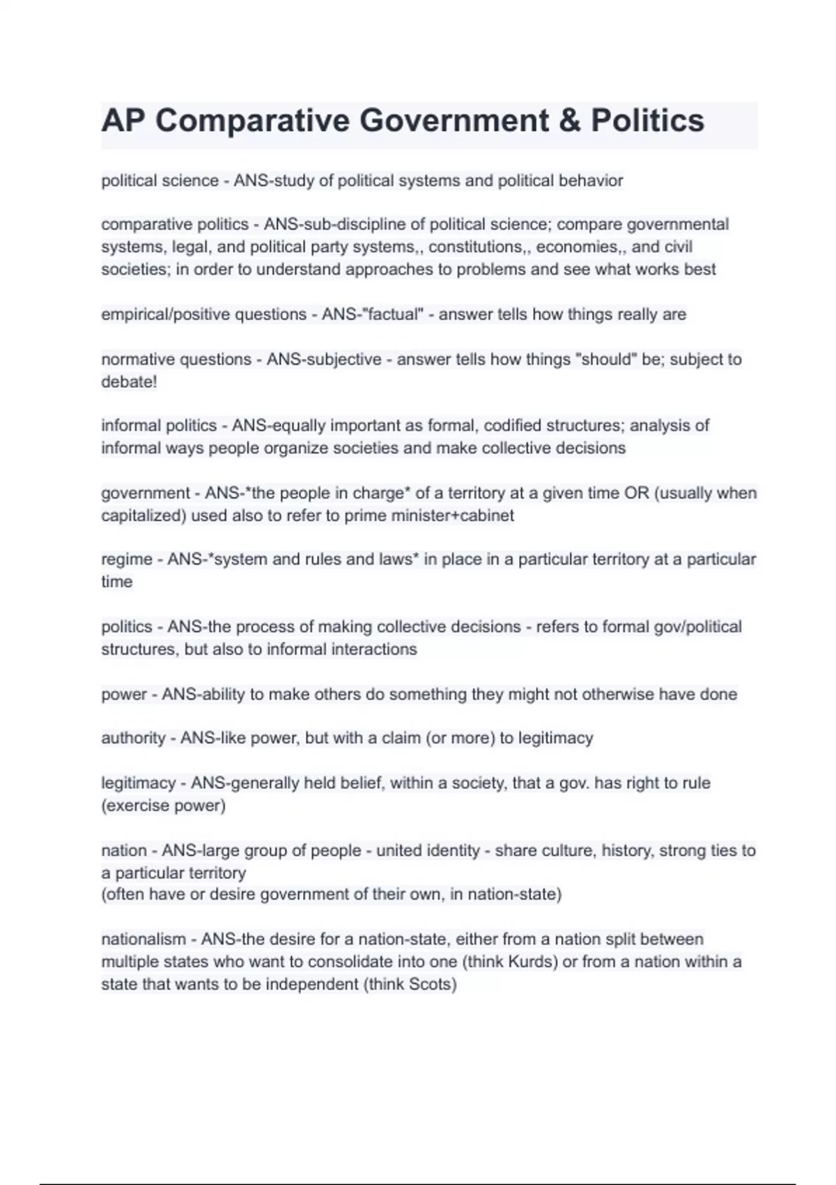 - AP Comparative Government & Politics