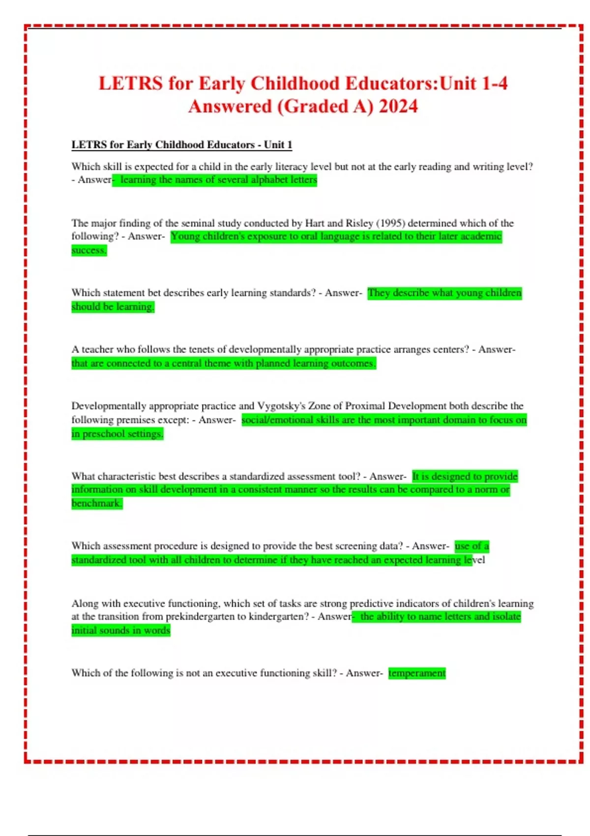 LETRS for Early Childhood Educators: Unit 1-4 Answered (Graded A) 2024