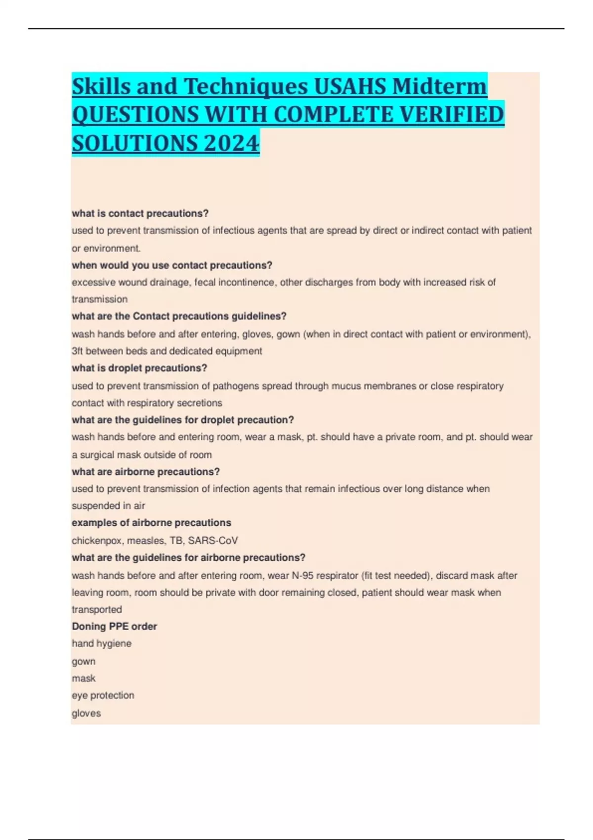 Skills and Techniques USAHS Midterm QUESTIONS WITH COMPLETE VERIFIED SOLUTIONS 2024