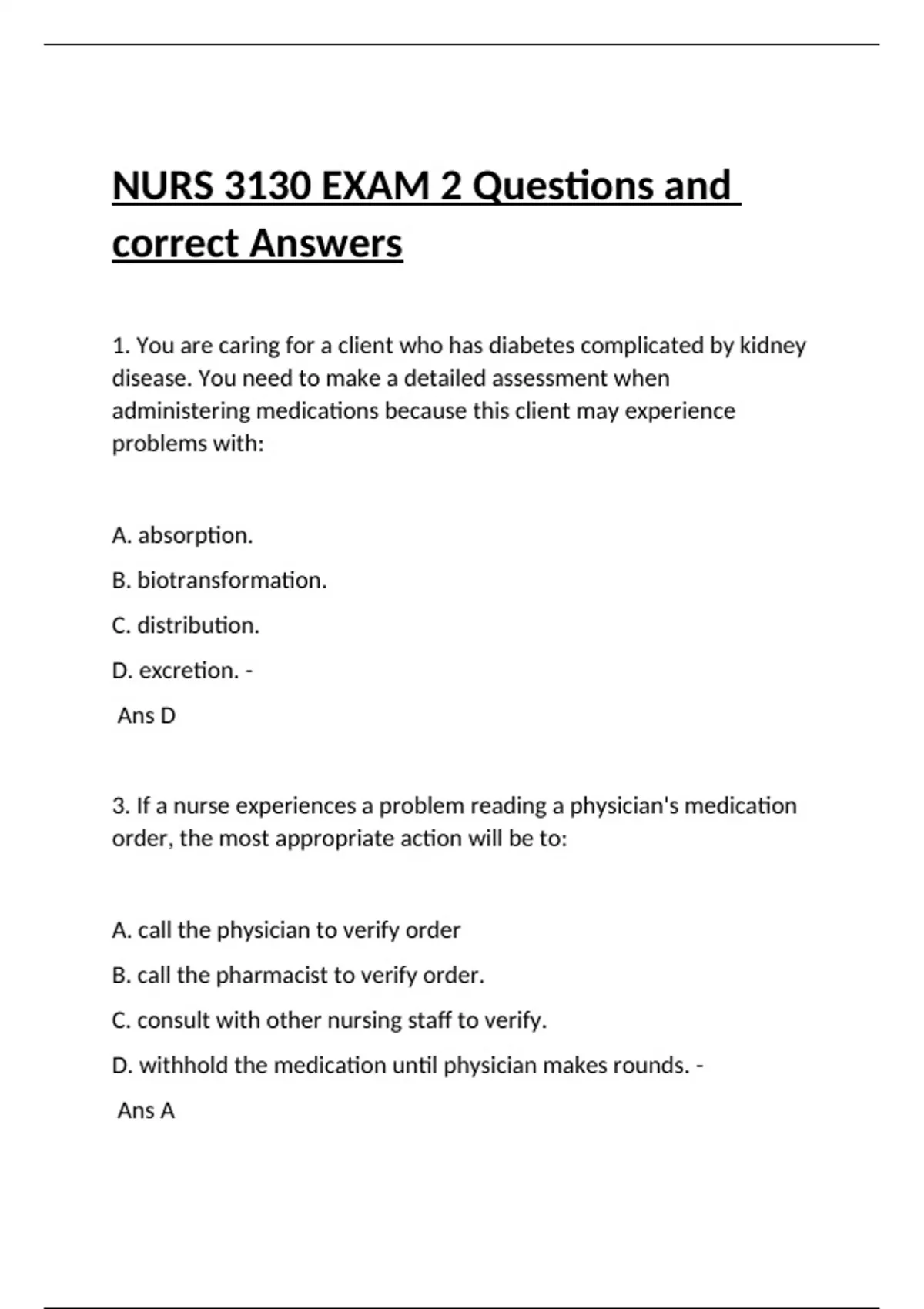 NURS 3130 EXAM 2 Questions and correct Answers.