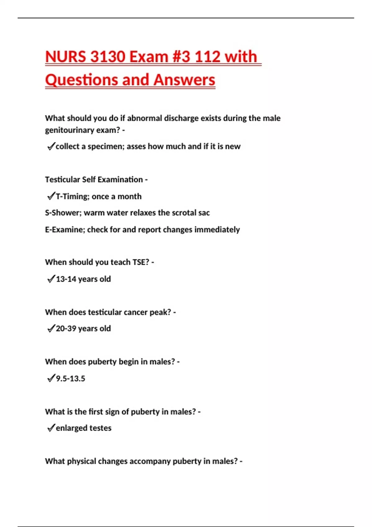 What is the first sign of puberty in males? - ✔ enlarged testes