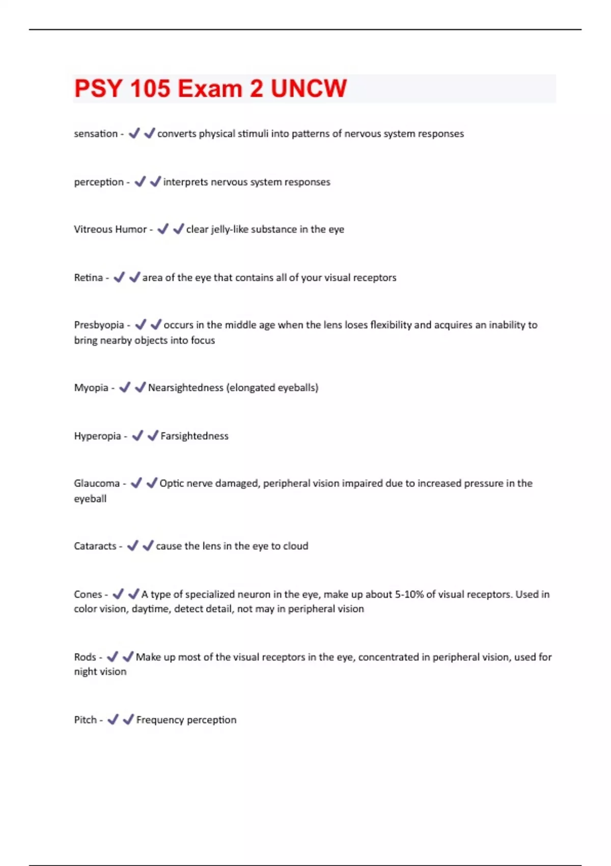 PSY 105 Exam 2 UNCW Questions & Answers Already Passed!!