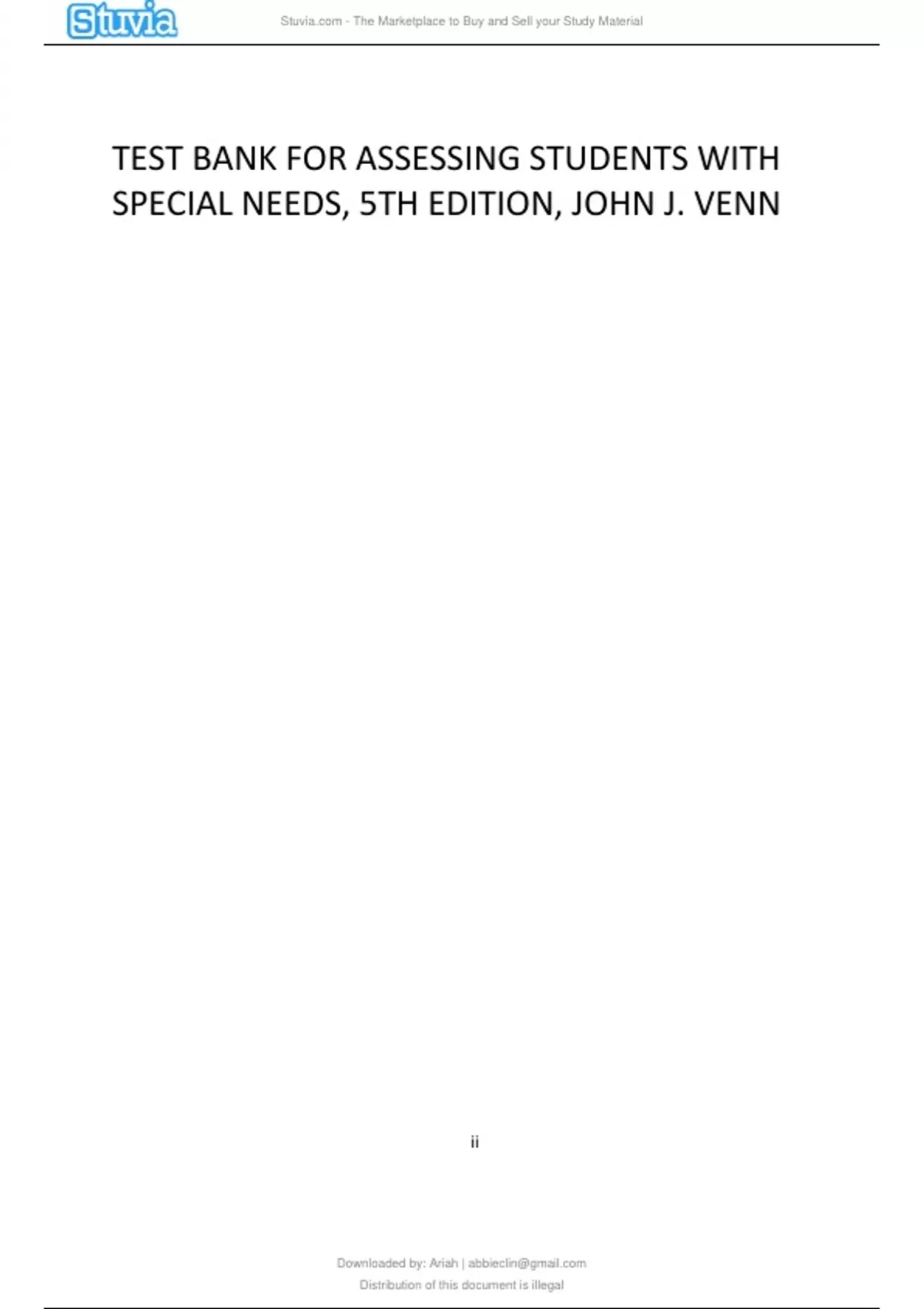 TEST BANK FOR ASSESSING STUDENTS WITH SPECIAL NEEDS, 5TH EDITION, JOHN J. VENN.TEST BANK FOR ASSESSING STUDENTS WITH SPECIAL NEEDS, 5TH EDITION, JOHN J. VENN.TEST BANK FOR ASSESSING STUDENTS WITH SPECIAL NEEDS, 5TH EDITION, JOHN J. VENN.
