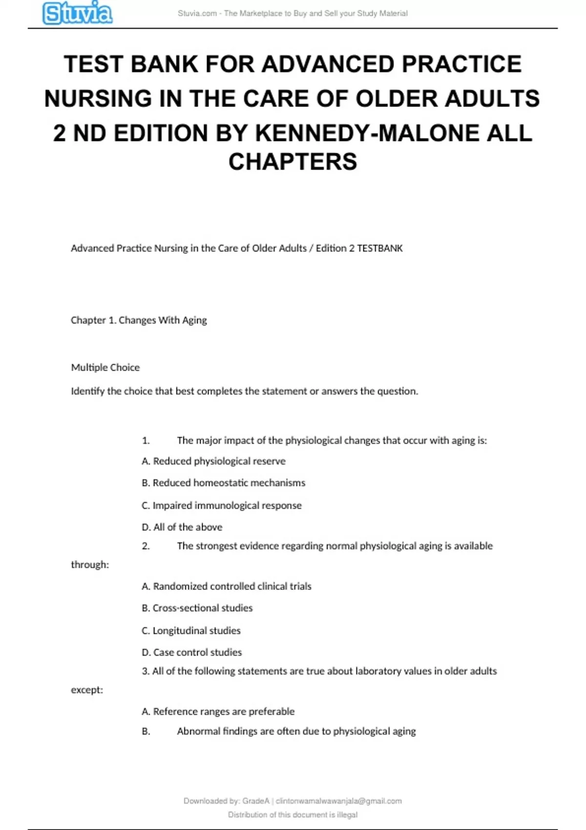 TEST BANK FOR ADVANCED PRACTICE NURSING IN THE CARE OF OLDER ADULTS 2 ND EDITION BY KENNEDY-MALONE ALL CHAPTERSTEST BANK FOR ADVANCED PRACTICE NURSING IN THE CARE OF OLDER ADULTS 2 ND EDITION BY KENNEDY-MALONE ALL CHAPTERSTEST BANK FOR ADVANCED PRACTICE NURSING IN THE CARE OF OLDER ADULTS 2 ND EDITION BY KENNEDY-MALONE ALL CHAPTERS