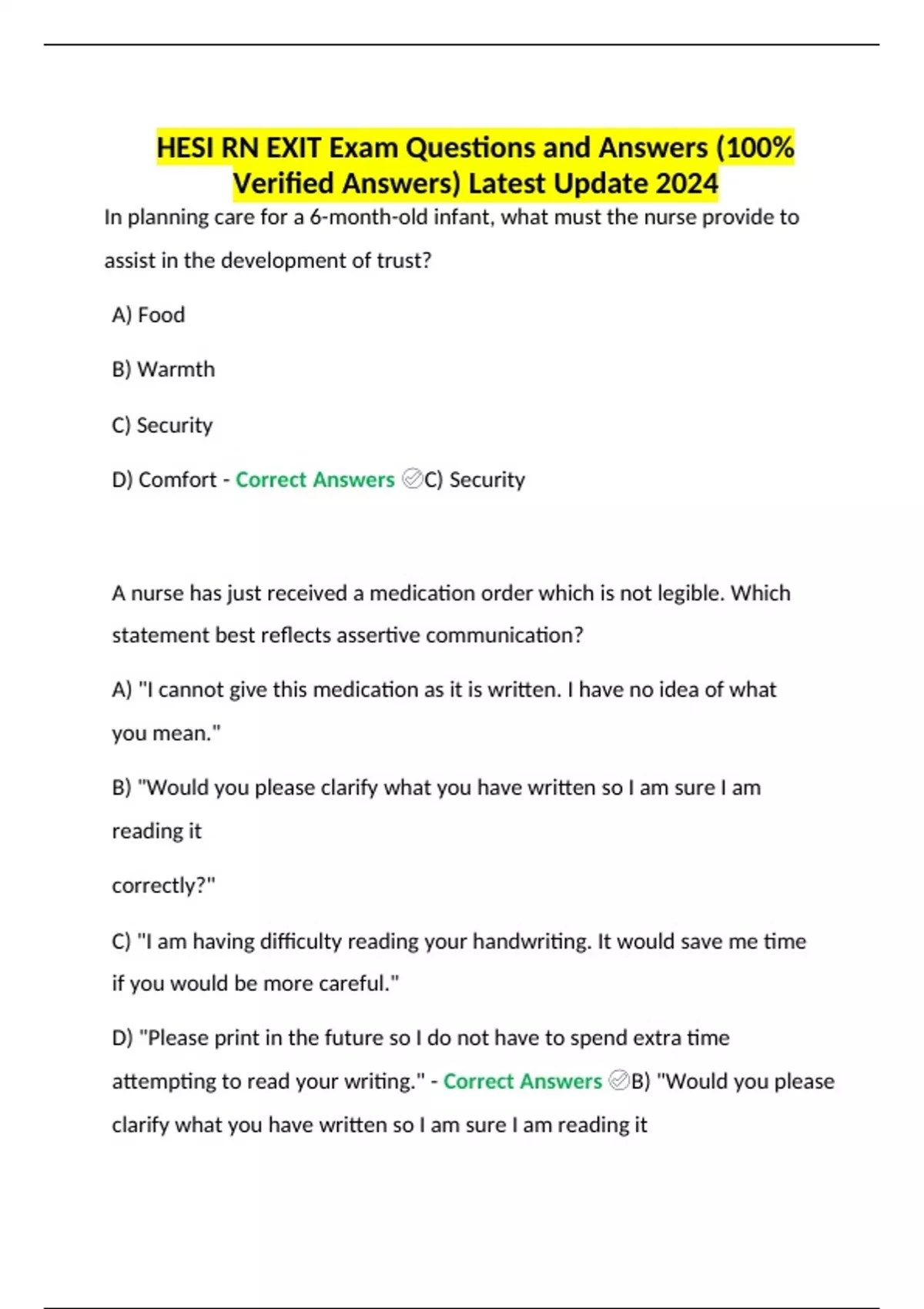 HESI RN EXIT Exam Questions and Answers (100% Verified Answers) Latest Update 2024