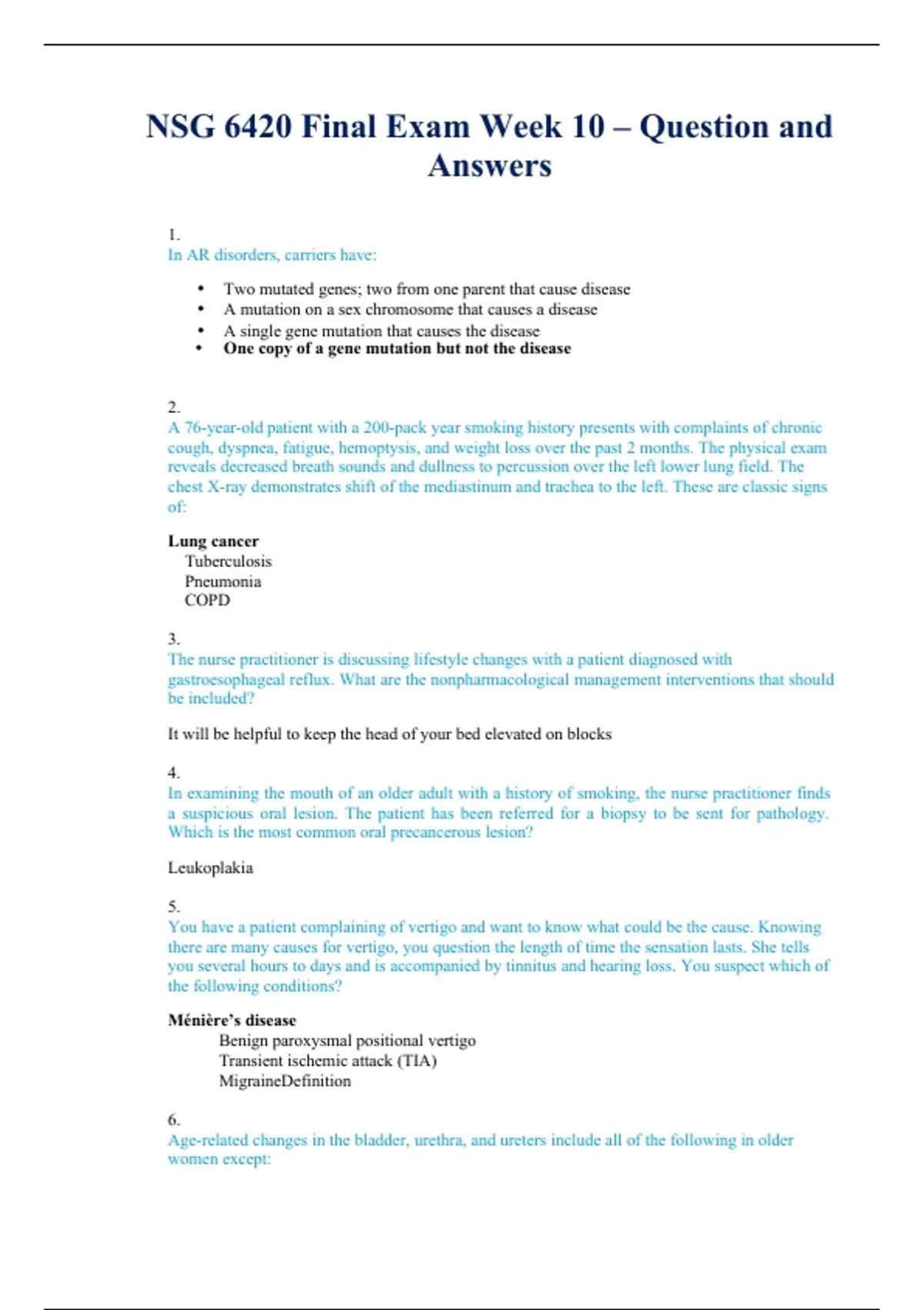 NSG 6420 Final Exam Week 10 – Question and Answers