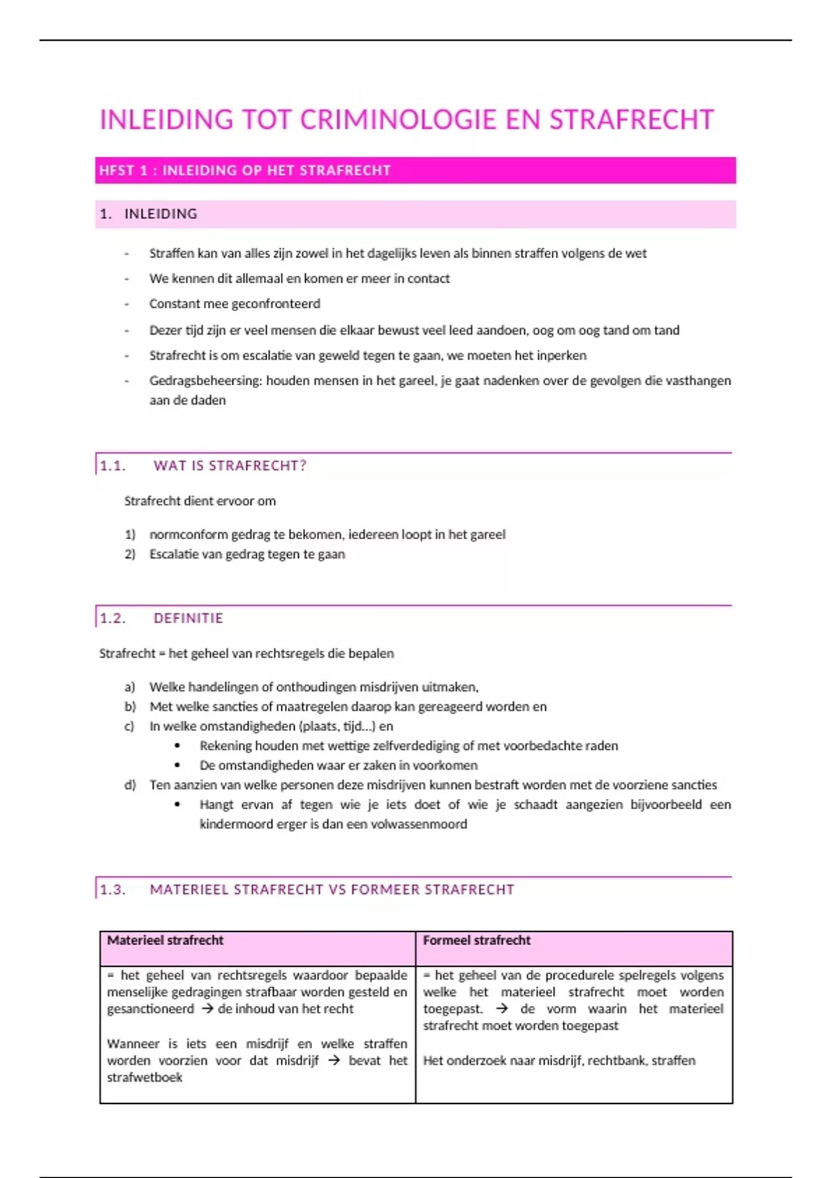 HFST 1 : INLEIDING OP HET STRAFRECHT