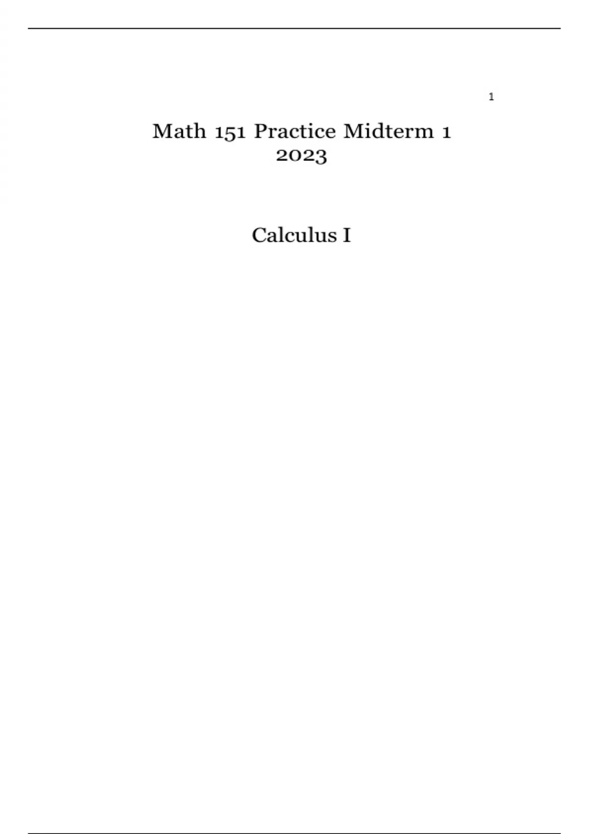 MATH 151 CALCULUS I MIDTERM 1 MATH 151 CALCULUS I MIDTERM 1 2023 Q & A CORRECTMATH 151 CALCULUS I MIDTERM 1 2023 Q & A CORRECT2023 Q & A CORRECT