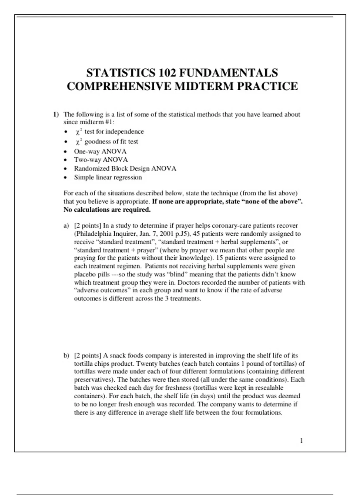 STATISTICS 102 FUNDAMENTALS COMPREHENSIVE MIFTERM PRACTICE 2024