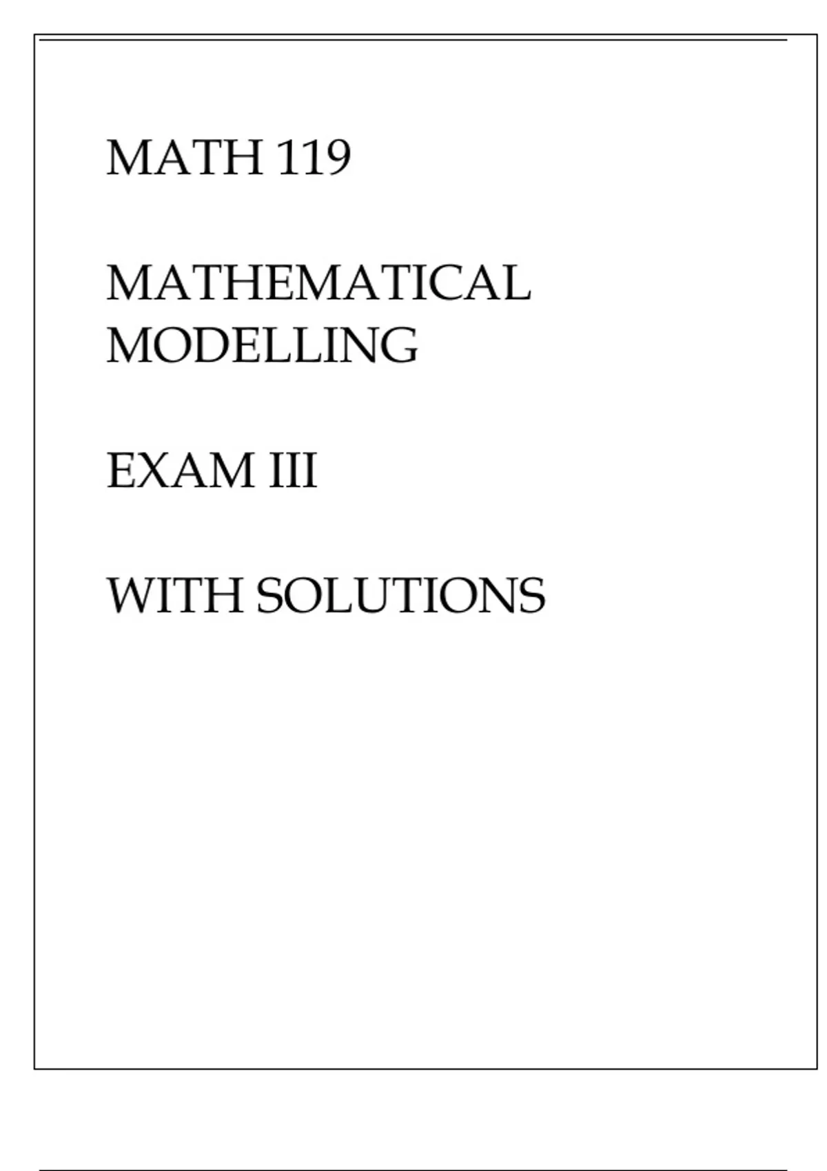 MATH 119 MATHEMATICAL MODELLING EXAM 3 FALL COMPLETE WITH SOLUTIONSMATH 119 MATHEMATICAL MODELLING EXAM 3 FALL COMPLETE WITH SOLUTIONSMATH 119 MATHEMATICAL MODELLING EXAM 3 FALL COMPLETE WITH SOLUTIONS