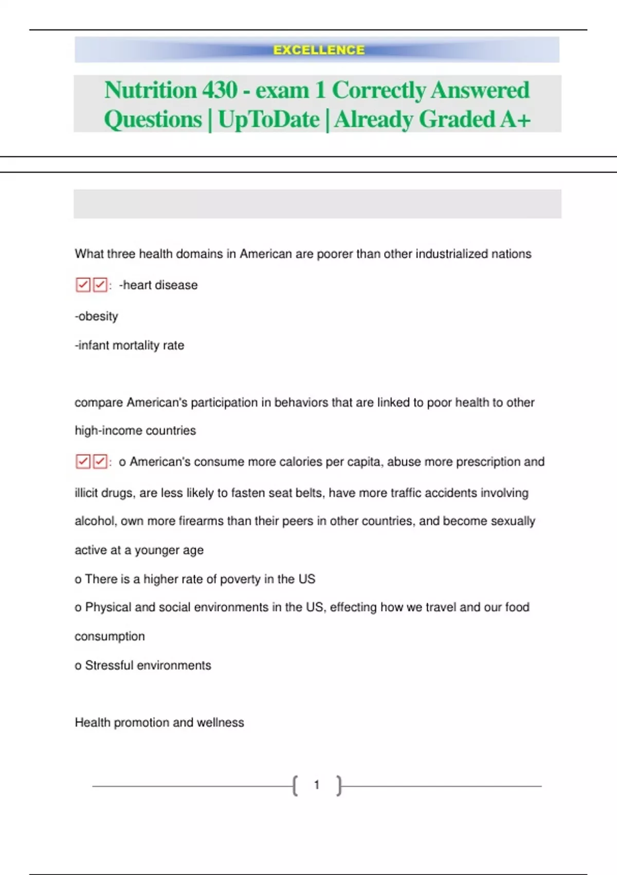 Nutrition 430 - exam 1 Correctly Answered Questions| UpToDate | Already Graded A+