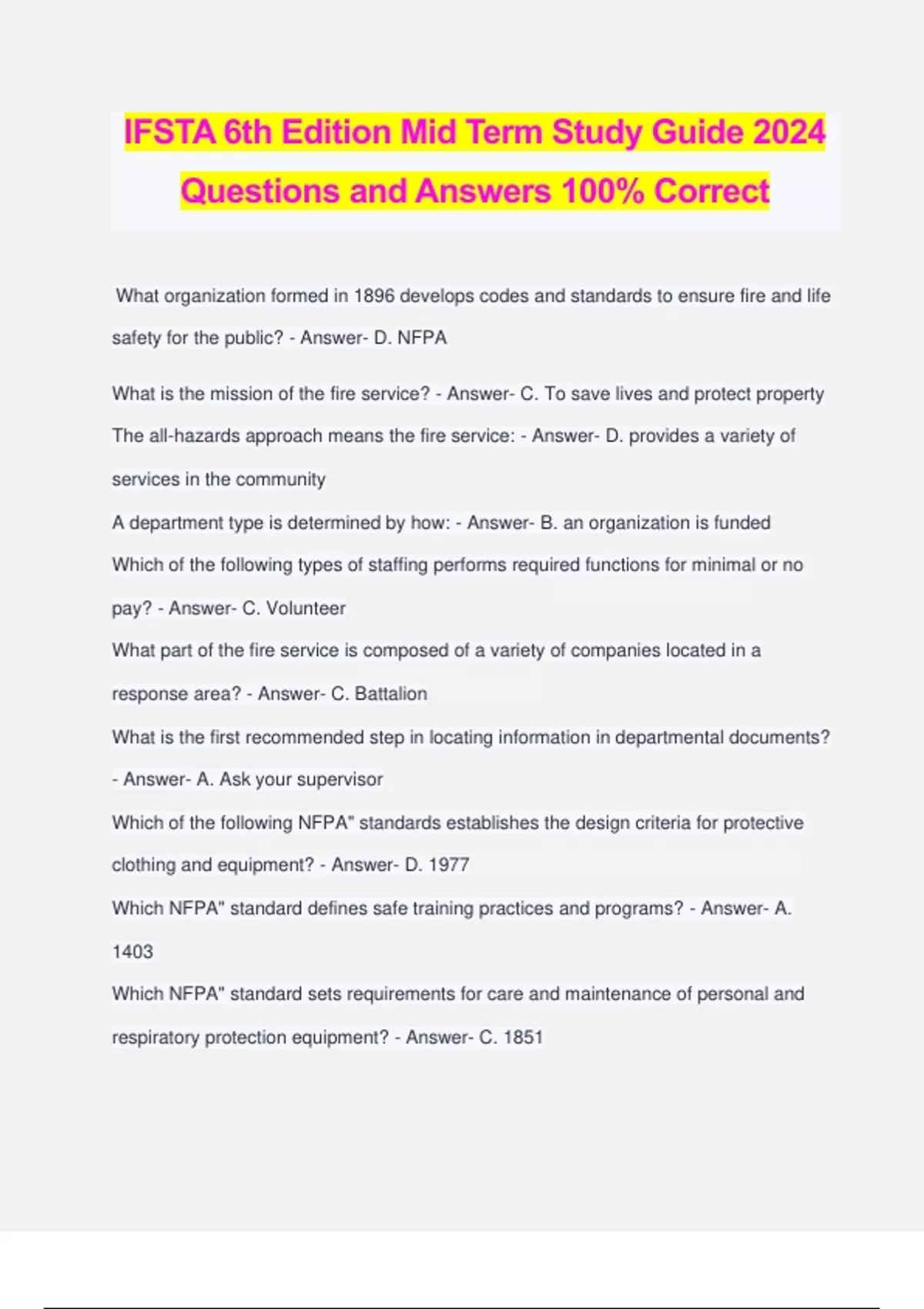 IFSTA 6th Edition Mid Term Study Guide 2024 Questions and Answers 100% Correct