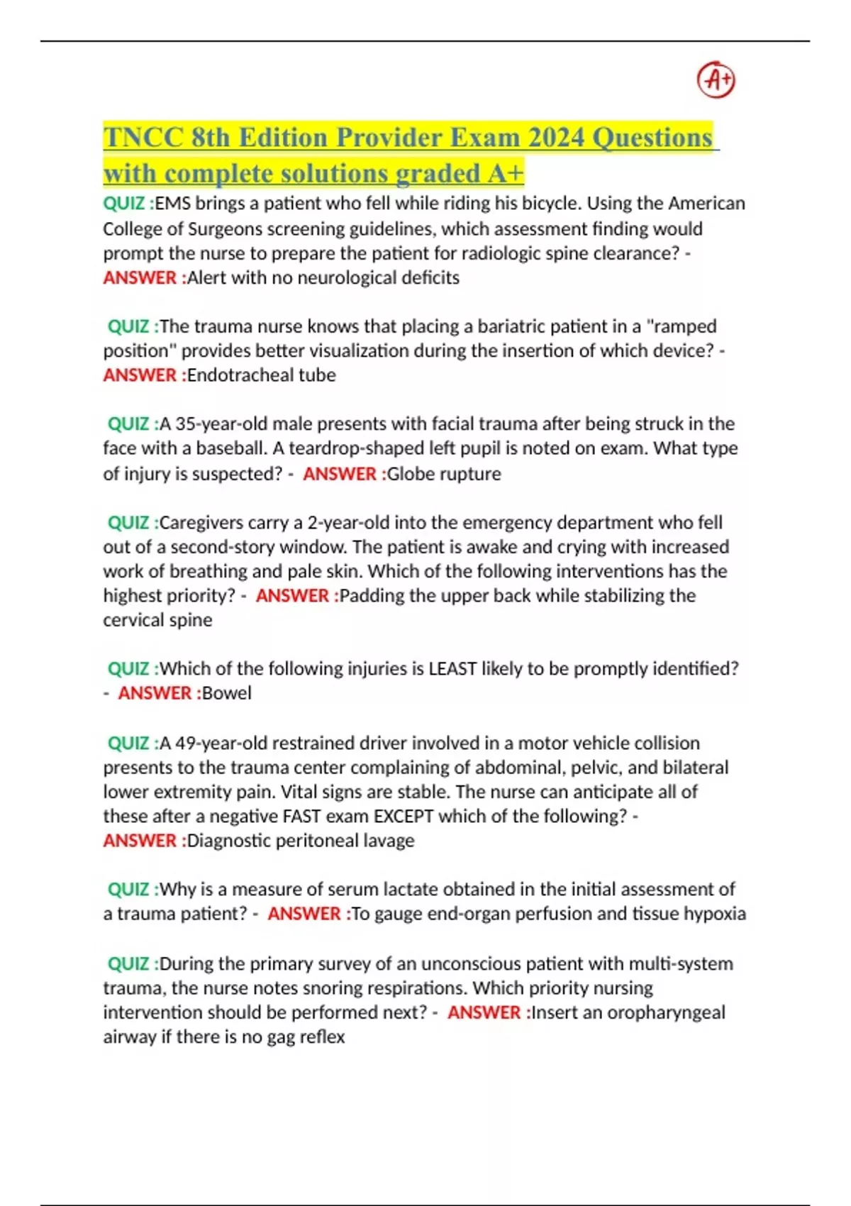 QUIZ :A trauma patient is en route to a rural emergency department.