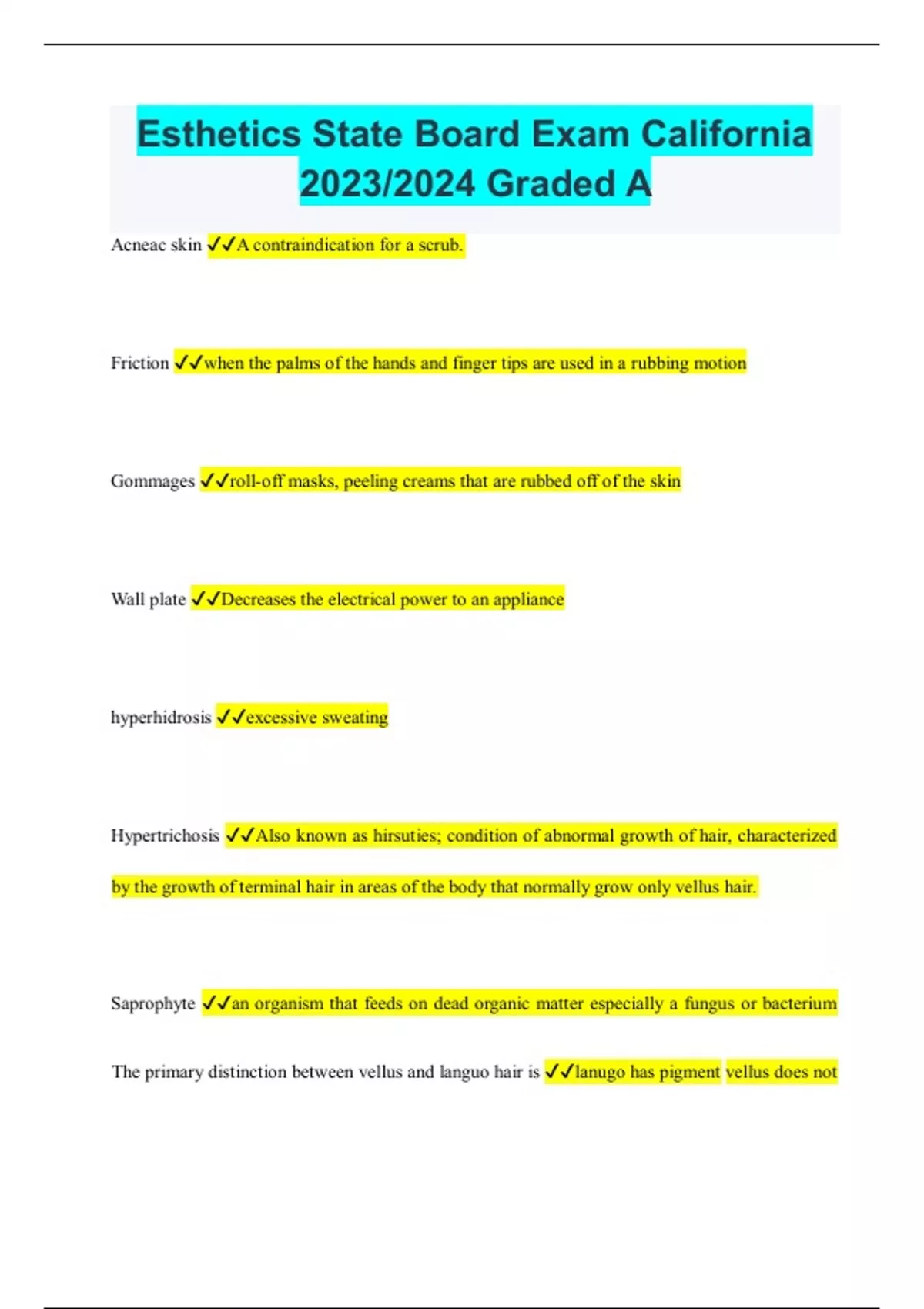 Esthetics State Board Exam California Graded A