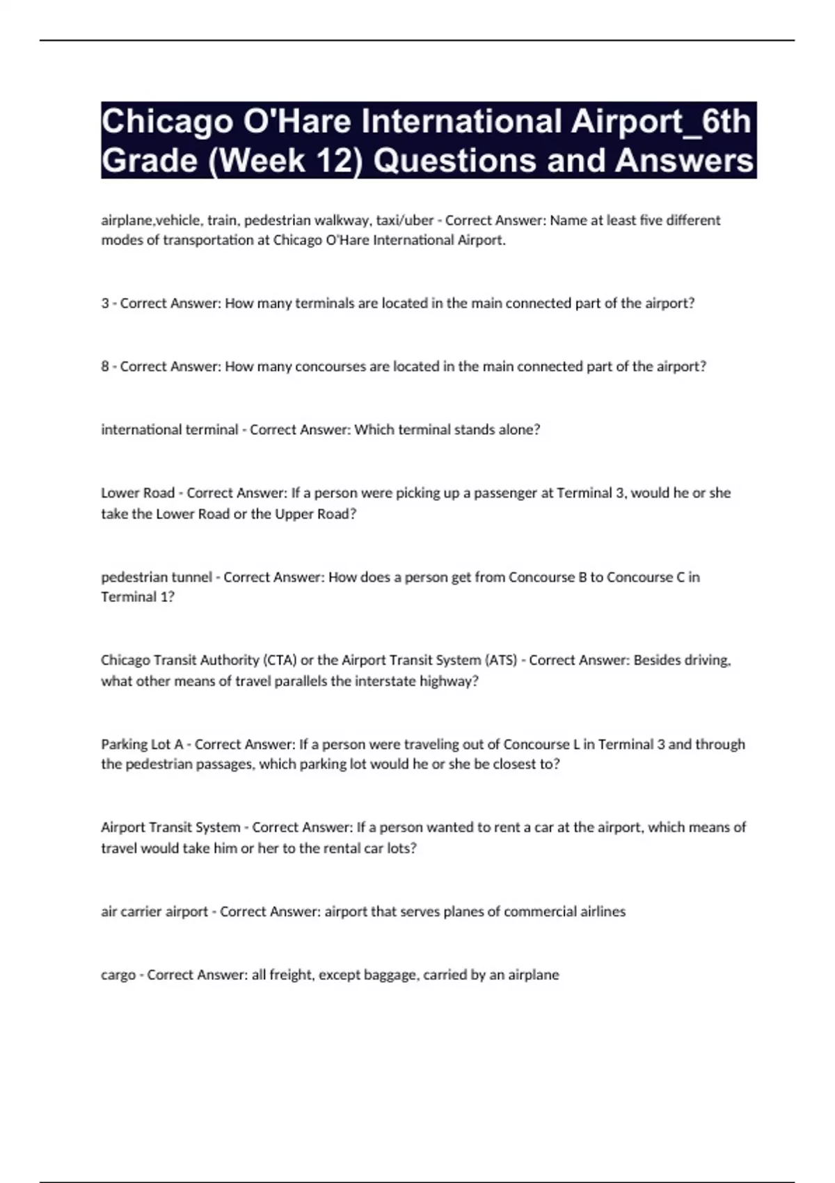 Chicago O'Hare International Airport_6th Grade (Week 12) Questions and Answers.