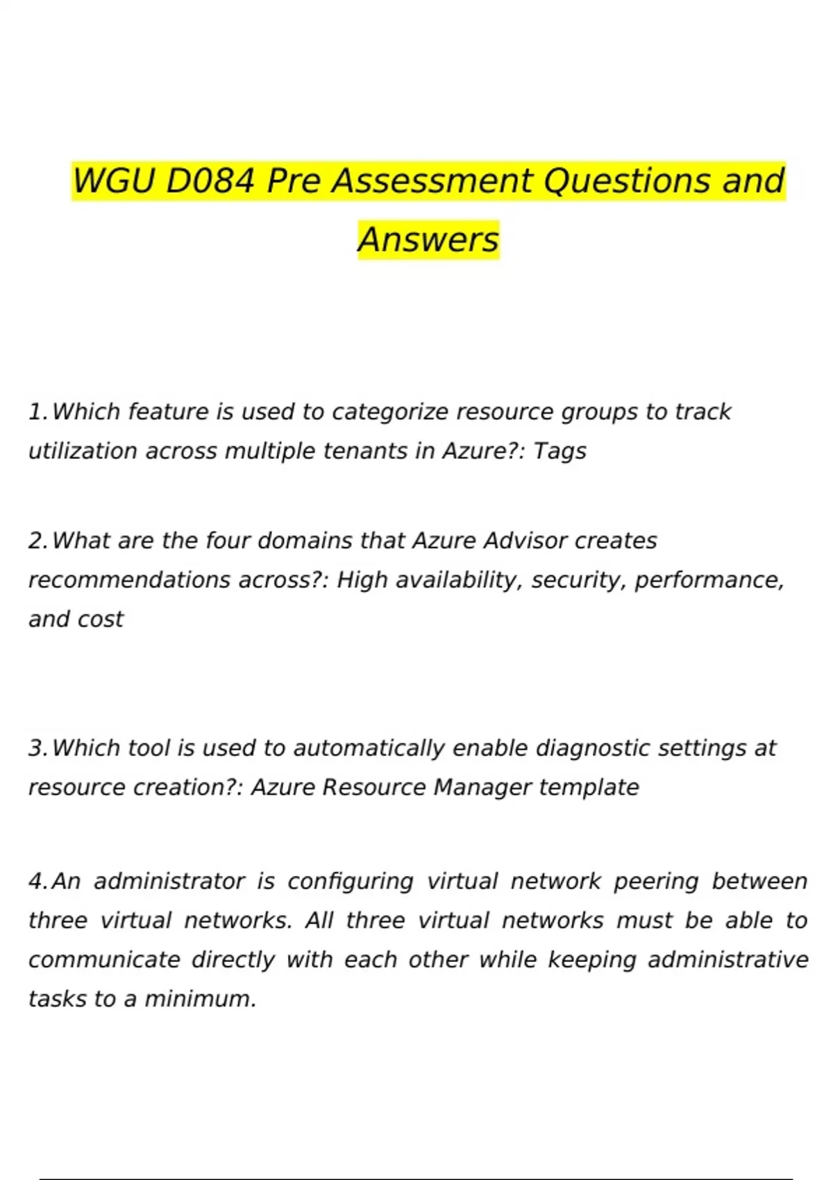 wgu d084 pre assessment questions and answers